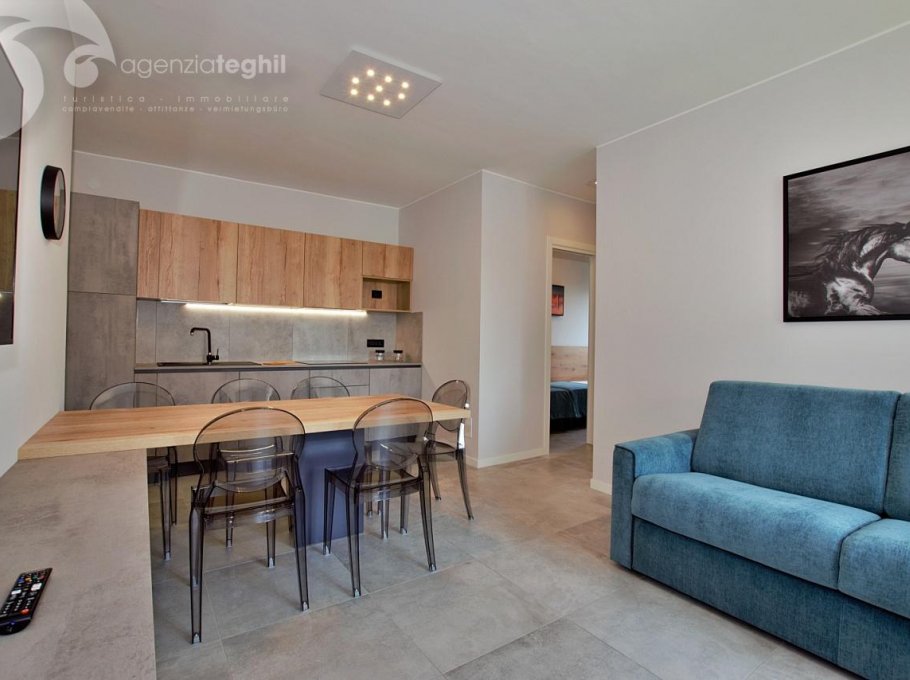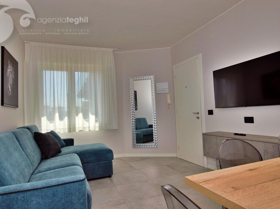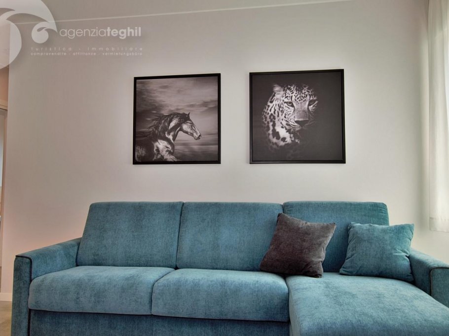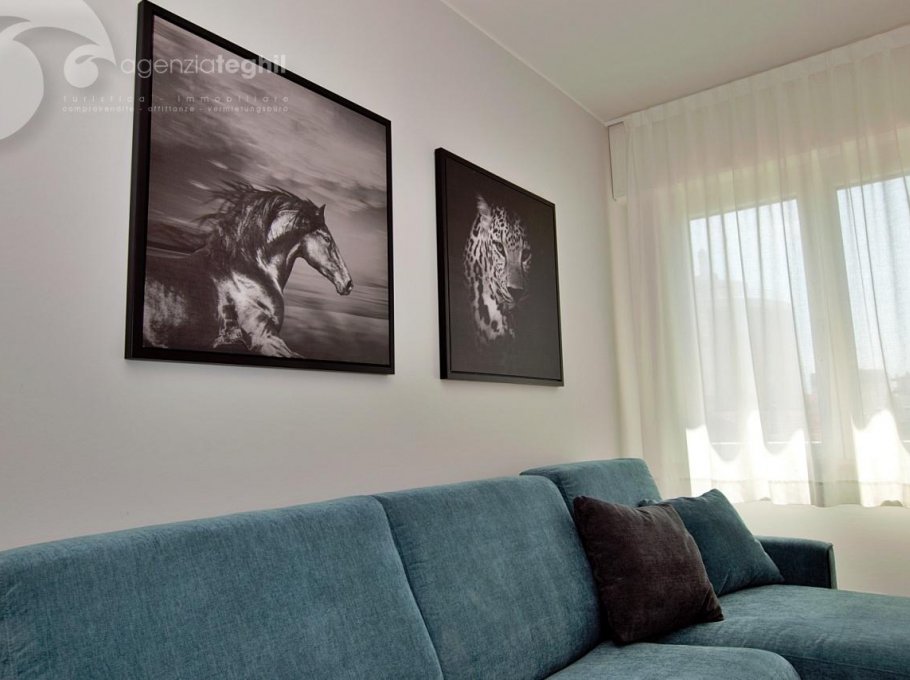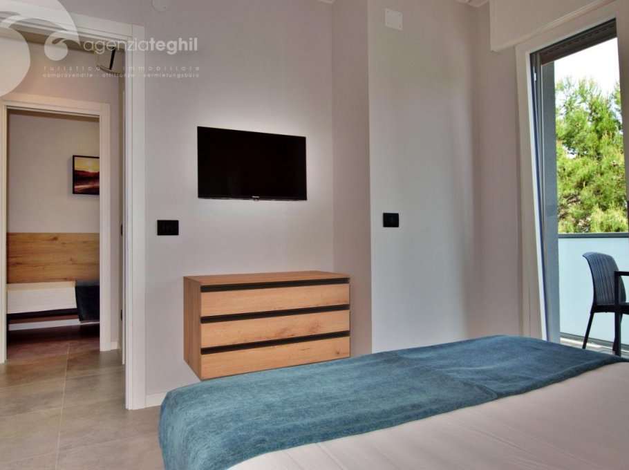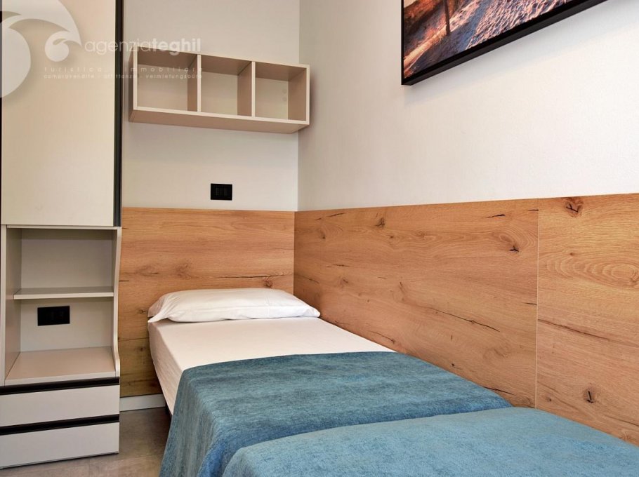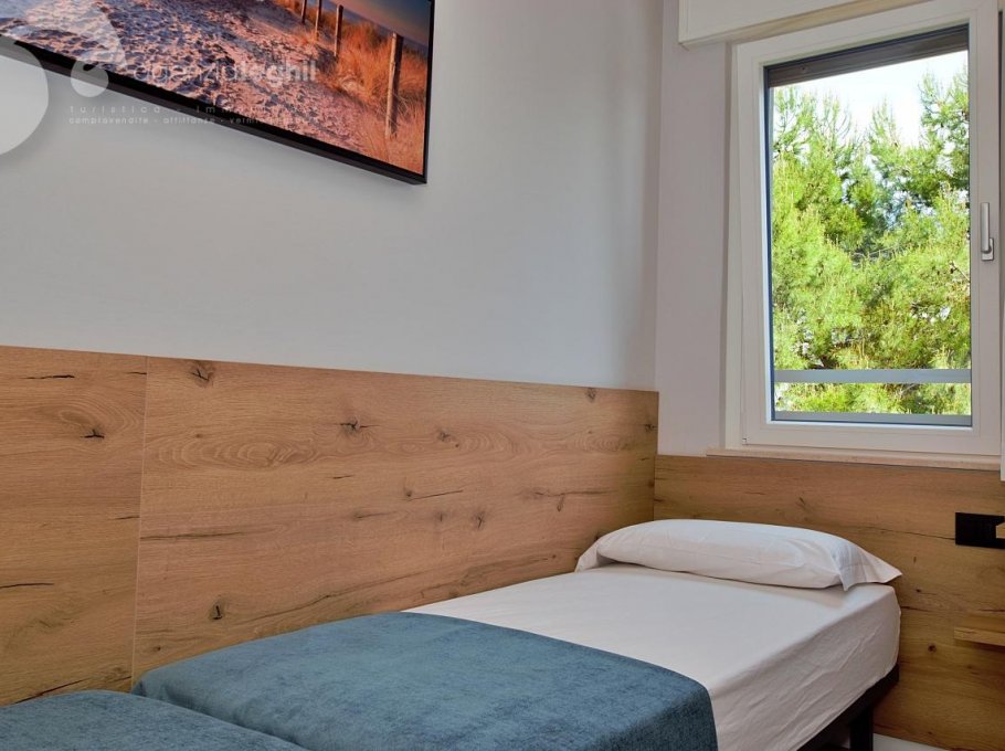 Type C: 4/5 people: Apartment on the 3rd floor (with lift) completely renovated. Composed of living room with sofa bed and television ( italians channels only ); kitchenette with induction hob equipped with washing machine, dishwasher, 240 liter refrigerator two-door and microwave; sleeping area consisting of a double bedroom with terrace, a bedroom with two single beds, bathroom with window and shower box.
