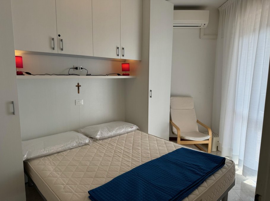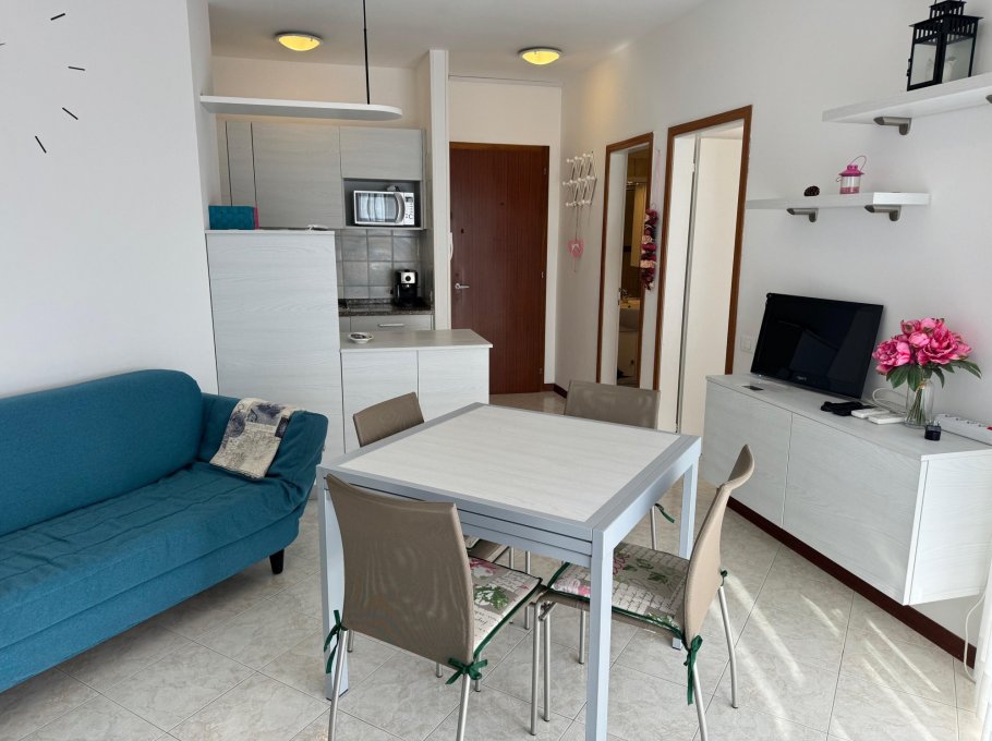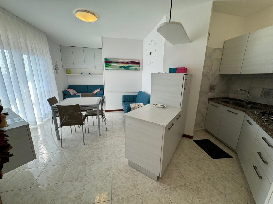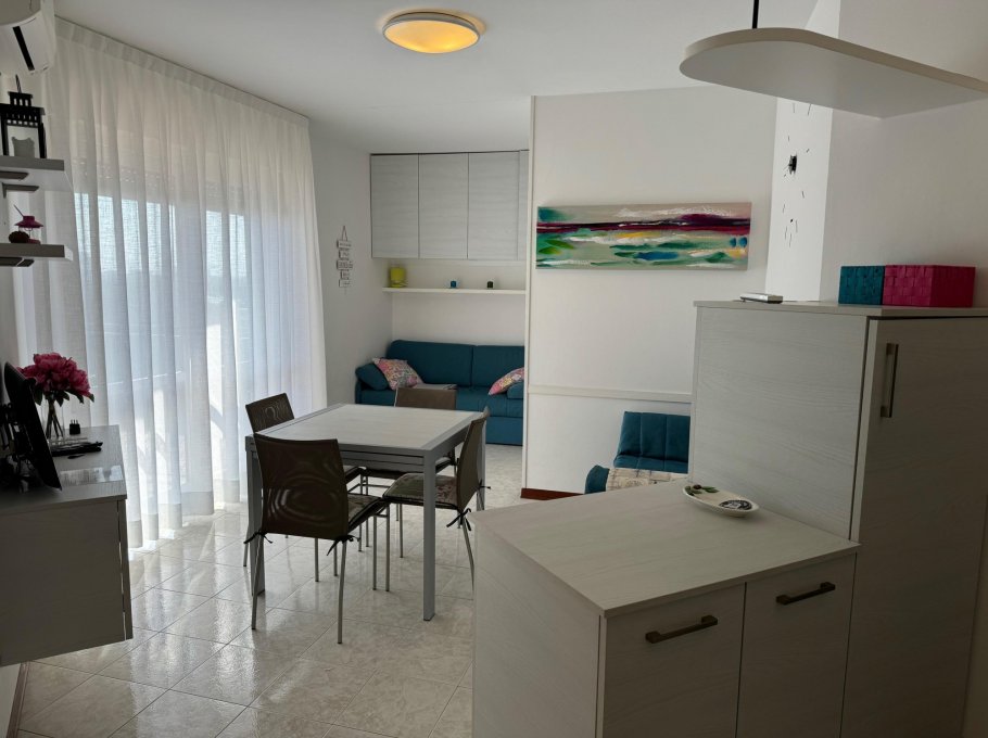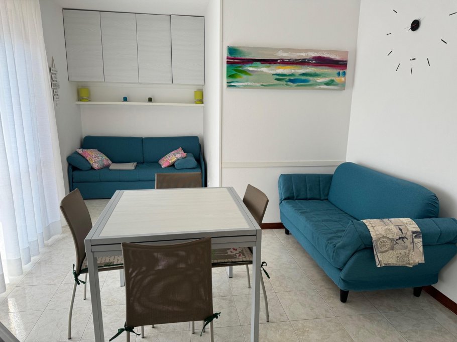 Apartment in a seafront building, well furnished on the 7th floor, with a large terrace with a beautiful sea view. It is composed of a living room with kitchenette and double sofa bed, double bedroom, bathroom with box shower. The apartment is also equipped with air conditioning (double split) is on request at €35.00 per week. With parking space inside the building.