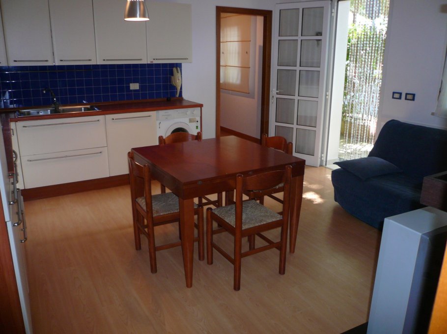 Renovated apartment, just a few steps from the sea and from the center on the ground floor consists of two large bedrooms, the first with a double bed, the second with three single beds, spacious living room with kitchenette, equipped with TV, microwave, washing machine, dishwasher, air conditioning, bathroom with shower, outdoor area fenced, private parking.