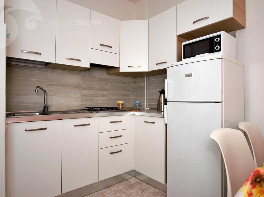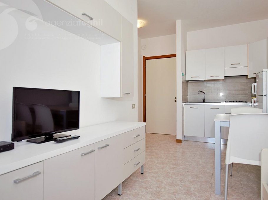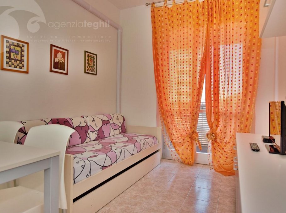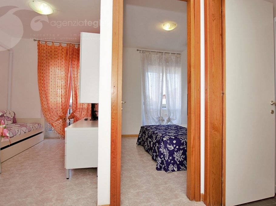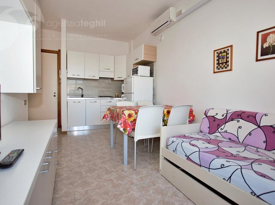 Just the beach between you and the sea. The four-floor residence house is connected with the beach without street crossings. Lifts. 200 m away from the pedestrian area of Via Udine, overlooking the the quiet promenade Marin. Equipped with lifts and a supermarket food.