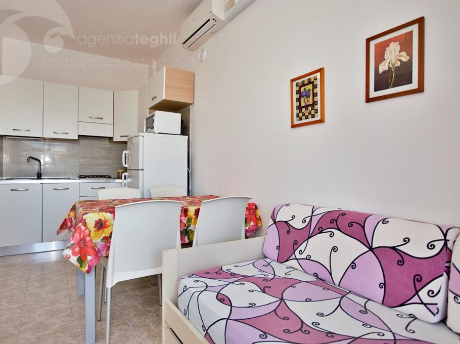 Type B / 1: 2/4 persons - Apartment on the 2nd floor consists of a bedroom, living room with double sofa bed, television and kitchenette with refrigerator from 240 lt (separate freezer), bathroom with shower cubicle. Balcony (no sea view) with table and chairs. The apartment is also equipped with air conditioning and wi-fi.