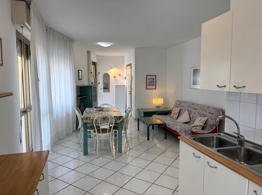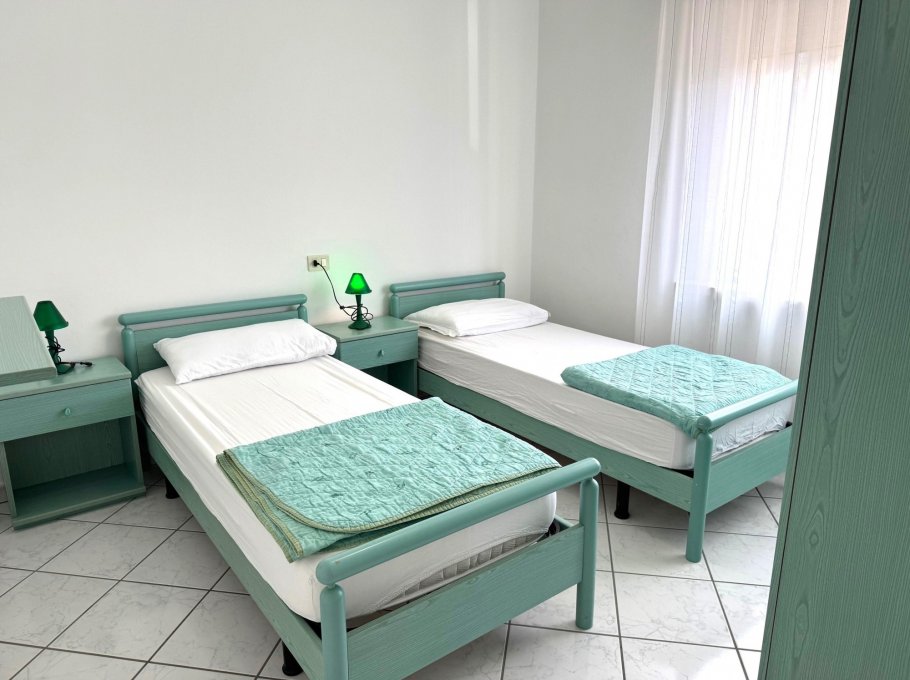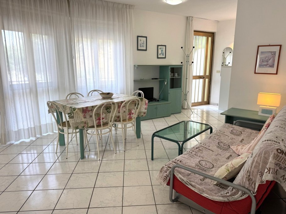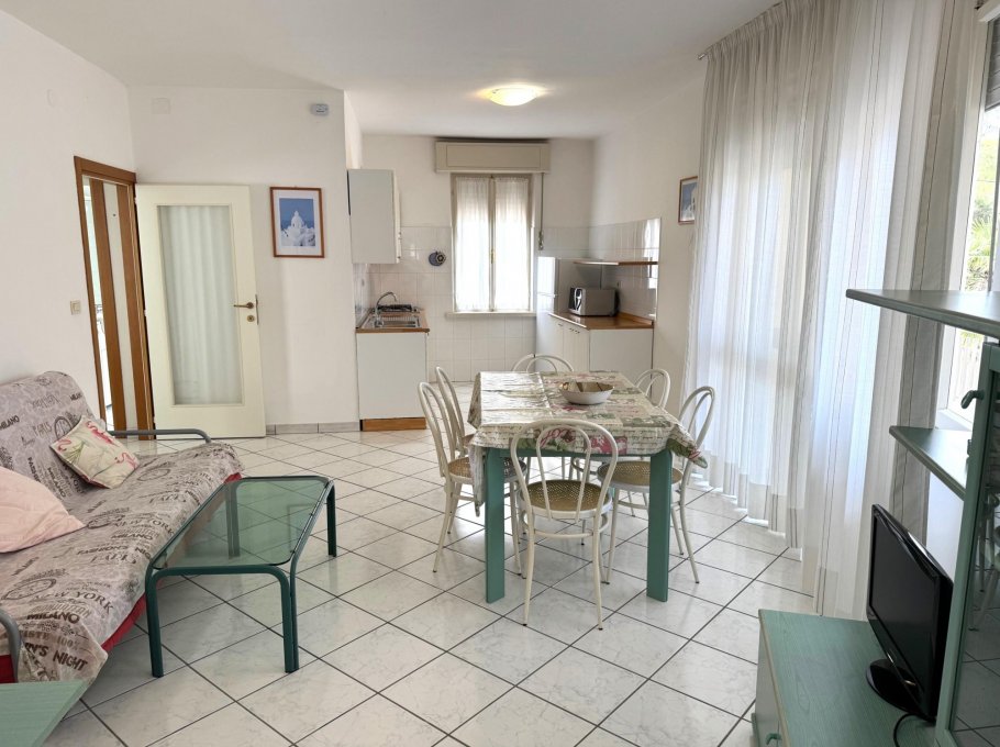 Roomy and bright apartment in a small building on the first floor with a terrace along the entire apartment; it consists of two double bedrooms, living room with kitchenette and double sofa bed, bathroom with box shower and window, numbered parking space in the courtyard. It is located close to the sea and a few minutes walk from the pedestrian avenue.