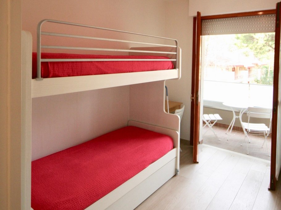 Lignano Pineta - 2° floor - Apartment with 1 double bedrooms, 1 room with bunk bed, living room with sofa kitchenette, bathroom, air conditioning, washing machine, dishwasher, terrace, numbered parking place.
