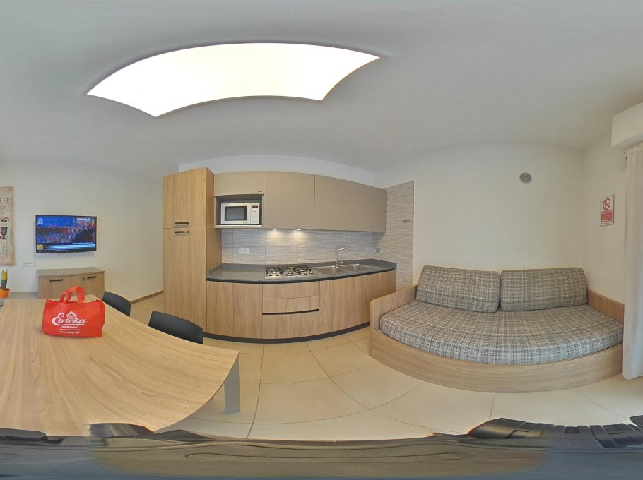 Three-room-apartment consisting of living/dining room with cooking area and sofa, tv and microwave, double- bedded-room, twin-bedded-room, shower box/washbasin/wc and a private terrace furnished with gazebo, table and chairs. Air conditioning, wi-fi and final cleaning are included in the price. In the rental rules of the agency are mentioned all the above written service’s ways. Parking place size: 5,00x2,35x2,35