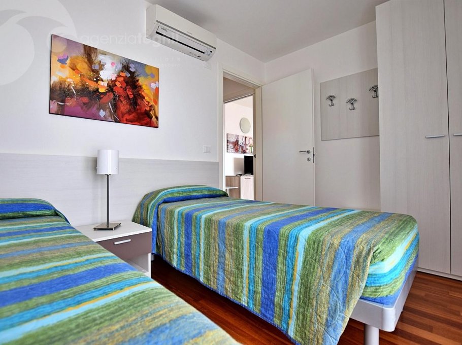 Type C: 4/5 persons. Apartment on the 2nd floor and comprises: living room with sofa bed and kitchenette, one double bedroom, one twin bedroom , windowed bathroom with shower box, terrace. The apartment is beautifully furnished with a TV, dishwasher, washing machine, air conditioning, wi-fi and private parking space.