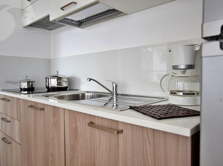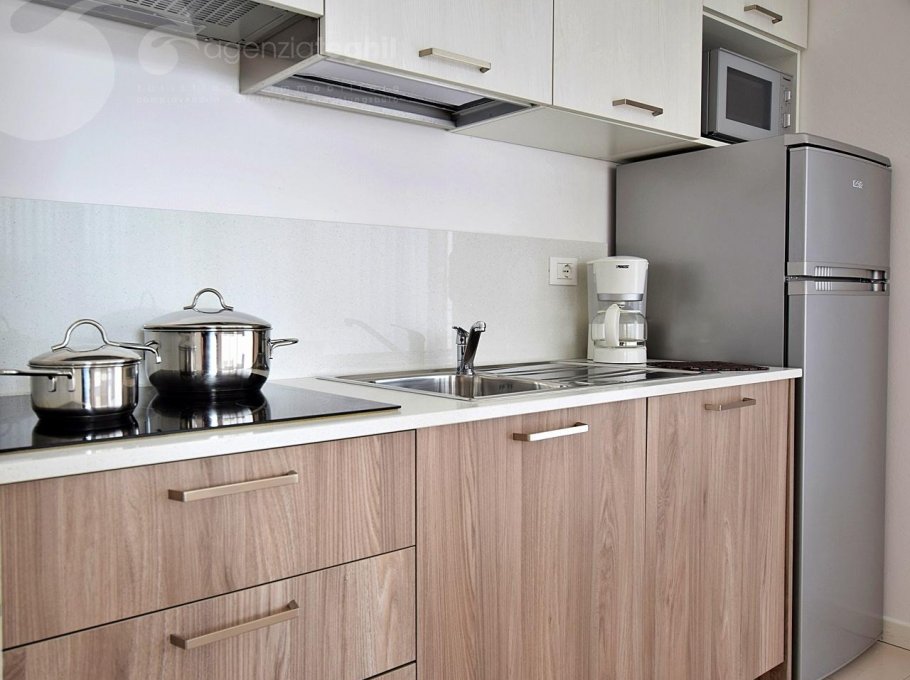 Type C: 4/5 persons. Apartment on the 2nd floor and comprises: living room with sofa bed and kitchenette, one double bedroom, one twin bedroom , windowed bathroom with shower box, terrace. The apartment is beautifully furnished with a TV, dishwasher, washing machine, air conditioning, wi-fi and private parking space.