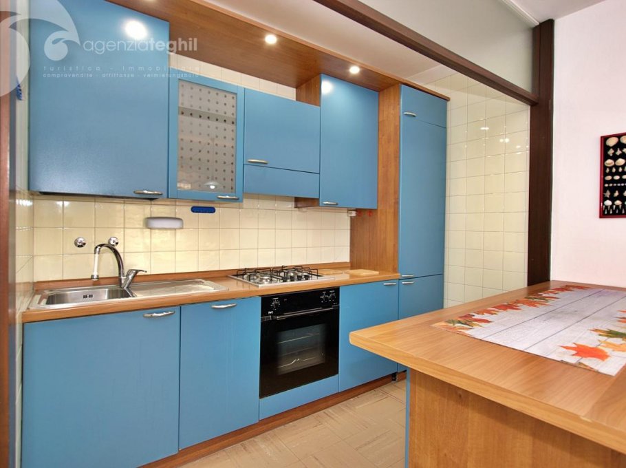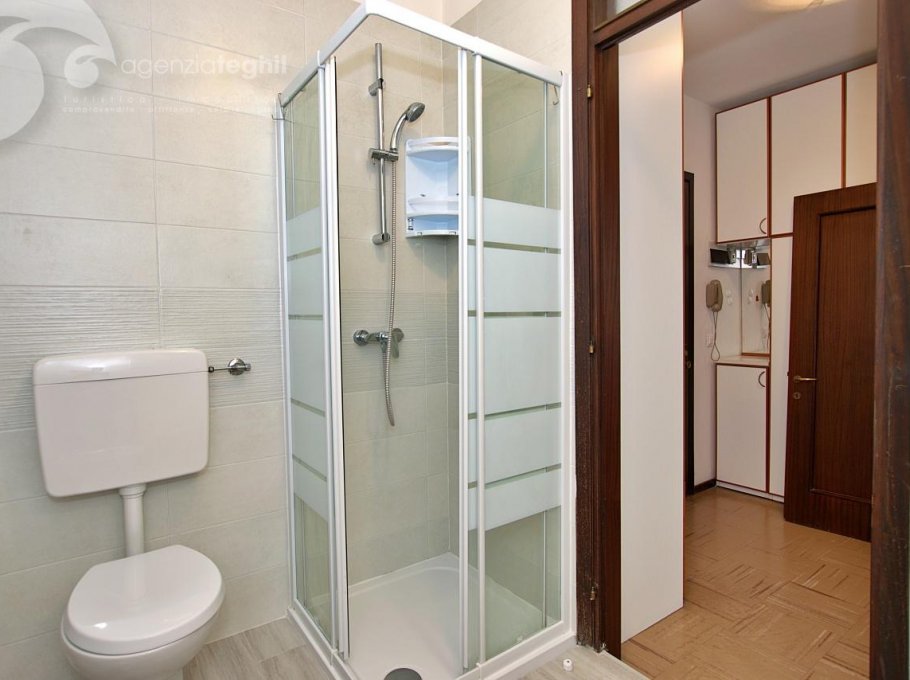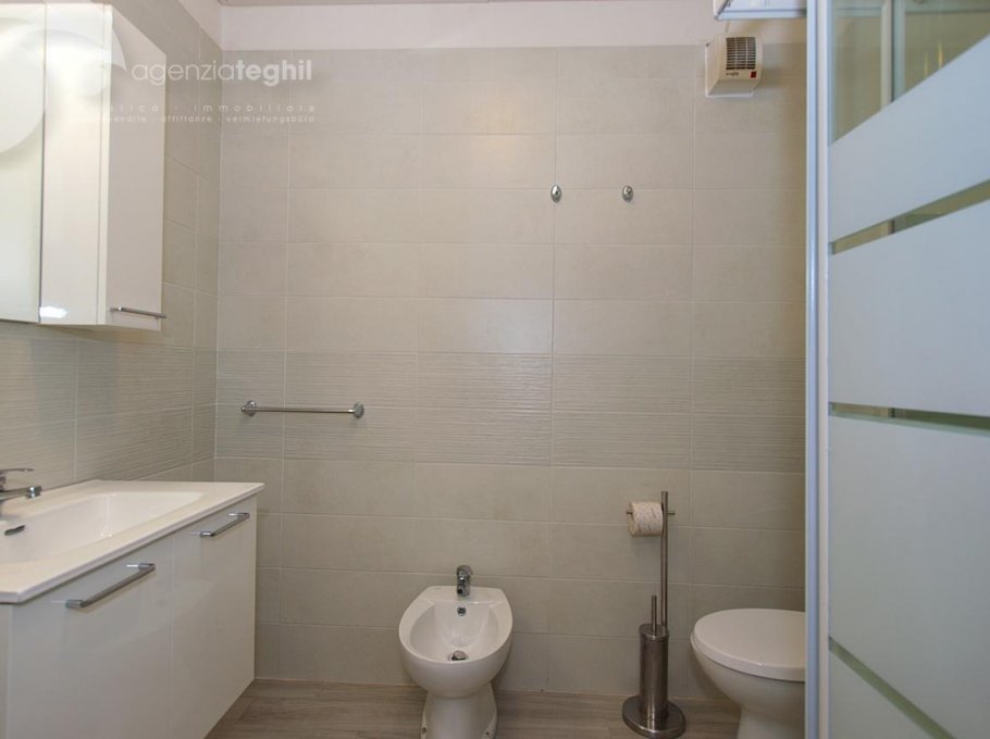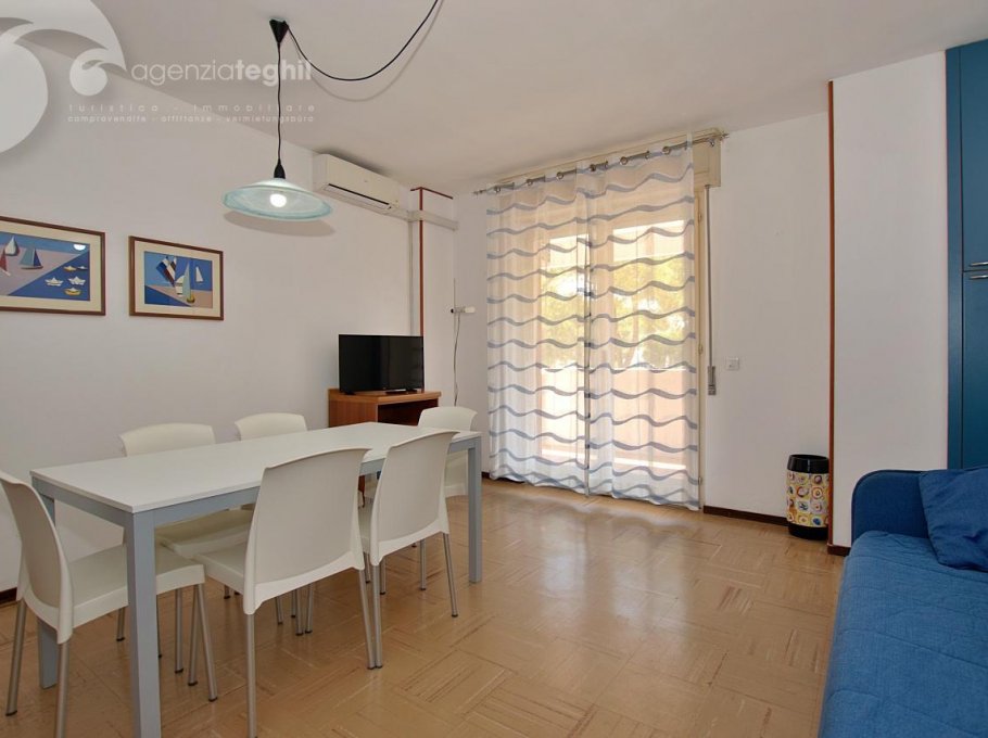 Type B: 3/4 people - Apartment on the 3rd floor, with lift, consisting of living room with single sofa bed, TV (Italian programs only) and kitchenette with 240 lt fridge (separate freezer), dishwasher and washing machine, one room with double bed + single bed; bathroom without window with shower box. Habitable terrace equipped with outdoor table and chairs. Apartment equipped with air conditioning with heat pump and parking space.