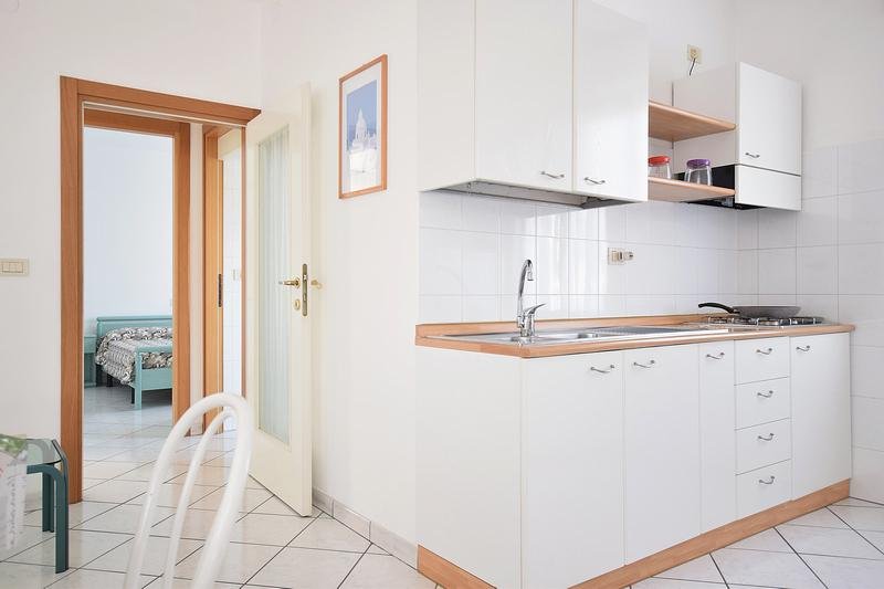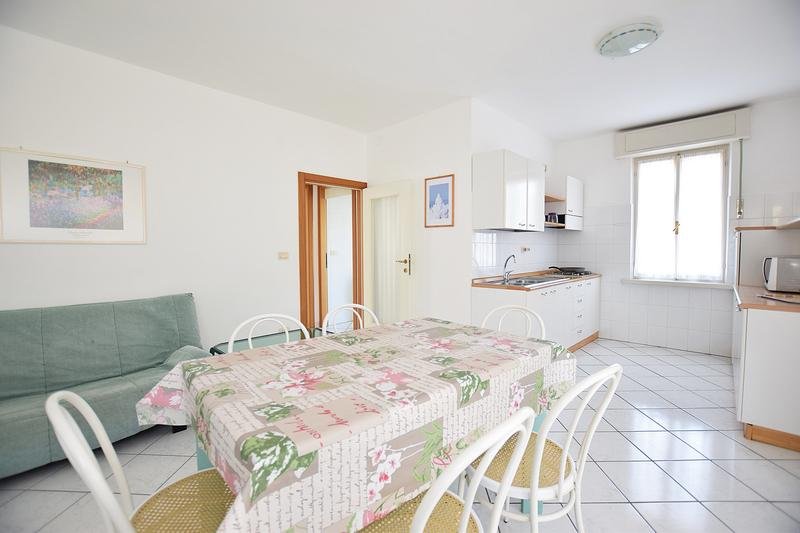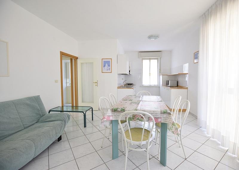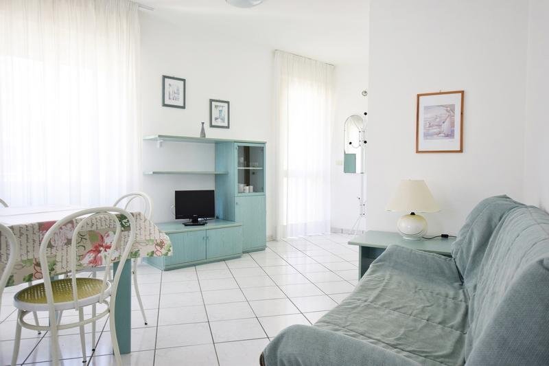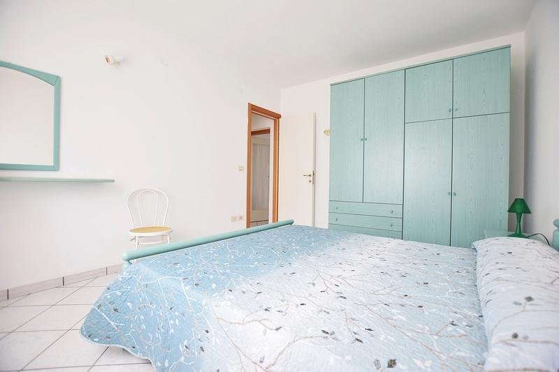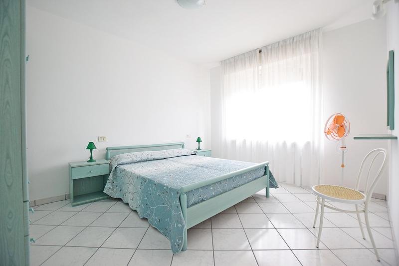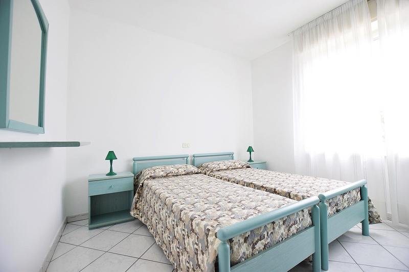 Type C 5 persons: second floor apartment with living room with sofa-bed and television (Italian channels only), balcony, kitchenette with with refrigerator (single door 190 liters) and microwave; a double room; a bedroom with two single beds; windowed bathroom with shower cubicle. The apartment is equipped with air conditioning, electric hot water boiler, washing machine and private parking.