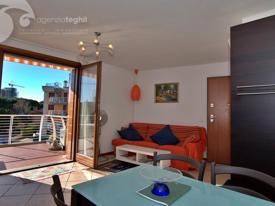 Type C - 4/5 people: Spacious apartment on the 3rd floor with lift, well furnished. Consisting of a large living room with open space kitchen. Equipped with television, 240 liter two-door refrigerator, dishwasher and microwave, large terrace with outdoor table and chairs. A double bedroom with terrace, two single bedrooms with terrace. A master bathroom with window equipped with shower cubicle and a bathroom without window and with extractor fan, equipped with washing machine.