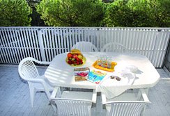 A small, modern two-story residence that rises in the middle of a green, pine wood-garden. It has a swimming pool for adults and one for children, playground, parking area, loundry room with washing machines and driers, working with coins. The residence is located at 150 metres from the sandy beach and not so far from the center of Lignano Sabbiadoro. Minimarkets, supermarkets and bakery are nerby. The apartmets are confortable and practical, with spacious rooms, bright and coloured furniture. All balconies are furnished with outdoor tables overlooking the garden.