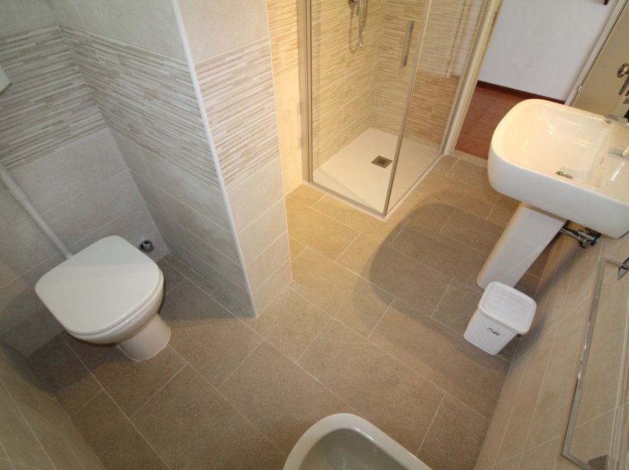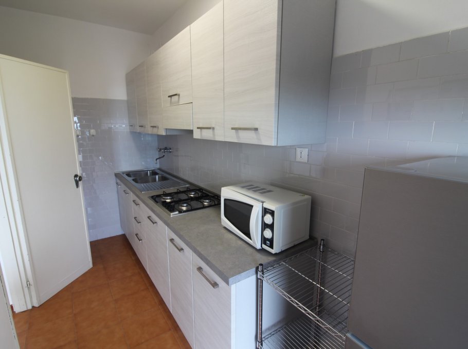 Type D: the apartment lies on the 5th floor and is composed of living-dining room with sofa-bed, kitchen, 1 double bedroom, 1 bedroom with two single beds, 1 single bedroom, 1 bathroom with shower/WC, 1 completely new bathroom, balconies with garden furnishings and seaview. For 6 people. Ideal for families with children - TV - washing machine - dishwasher - air conditioning unit - microwave oven. Beach service (1 sun umbrella, 1 sun chair and 1 sun bed) provided on request and subject to availability. Energy calass E ( 251,42 kWh/sq m year). CIN: IT030049C2HP55I2UK