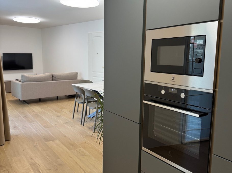 The living area is characterized by large windows that overlook an outdoor terrace, a real relaxation corner furnished with table and chairs, ideal for summer dinners or simply for the pleasure of being outdoors. Among the comforts included, you will find a washing machine, a dishwasher and air conditioning, for simple management of daily life, as well as Wi-Fi connection to always stay connected.