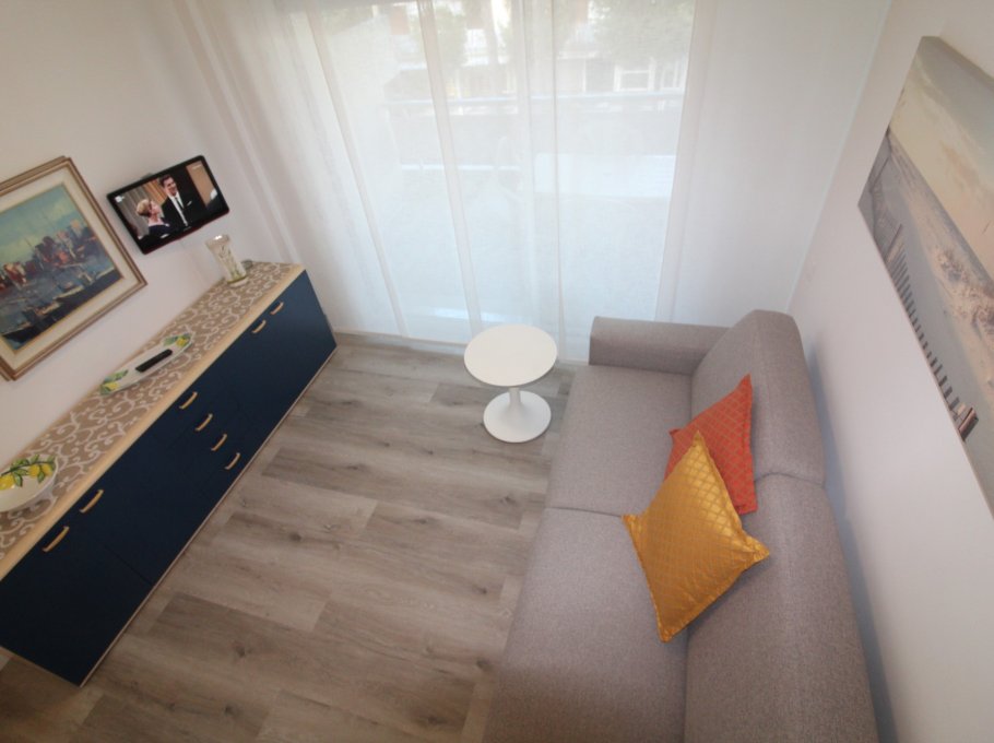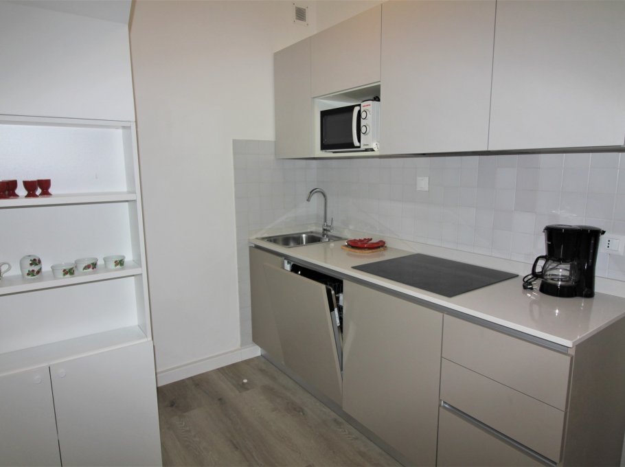 Comfortable residence in excellent position, in the shopping centre of Lignano Pineta and in a green area, with public limited parking place, at about 150m from the beach. The pictures are indicative.