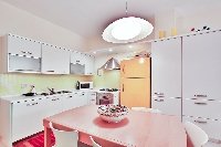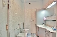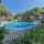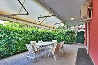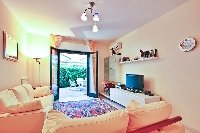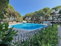 Elegand building with swimming pool in front of the beach. Apartment on the ground floor large livingroom with double sofa bed and terrace (with swimming poll view) with table and chairs, Kitchenette, 1 big bedroom with 1 double bed and 1 bunk bed and privat bedroom with shower cabin, 1 double bedroom with terrace, bathroom with shower cabin.