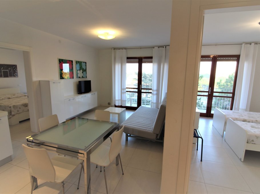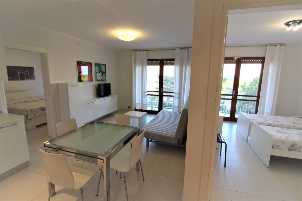 Type C: apartment with large living-dining room with sofa bed and kitchenette, 2 bathrooms with shower, 1 comfortable bedroom with double bed and 1 bedroom with two single beds; each room has a balcony overlooking the town center with shops. For 4-6 people. Suitable for families with children - TV SAT - air conditioning - washing machine - microwave oven. The pictures are indicative samples. Energy class C (147.94 kWh/mq year). CIN: IT030049B48QIPIYKU