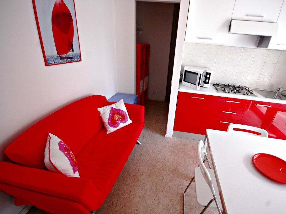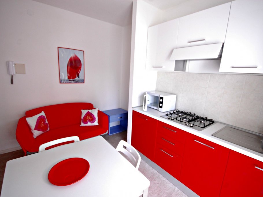 Type B: living-dining room with sofa bed and cooking corner, 1 bedroom with double-bed and single-bed, 1 bathroom with shower, balkony with garden furnishings. For 3-4 people. Air conditioning unit - ideal for families with children. Energy class D (177.76 kWh/sq m year). CIN: IT030049C26QYHLTRP