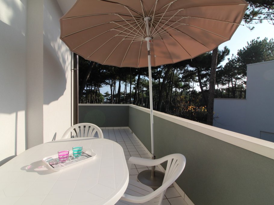 Elegant apartment house, surrounded by pine trees, in a central position in Lignano Pineta, about 50 m from the beach, with one reserved parking place.