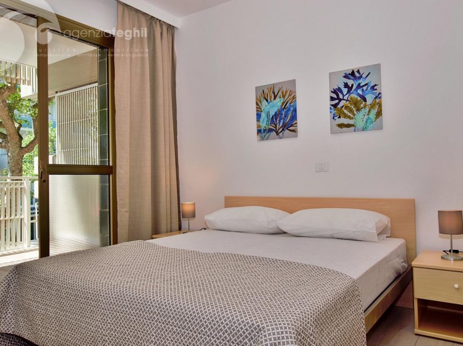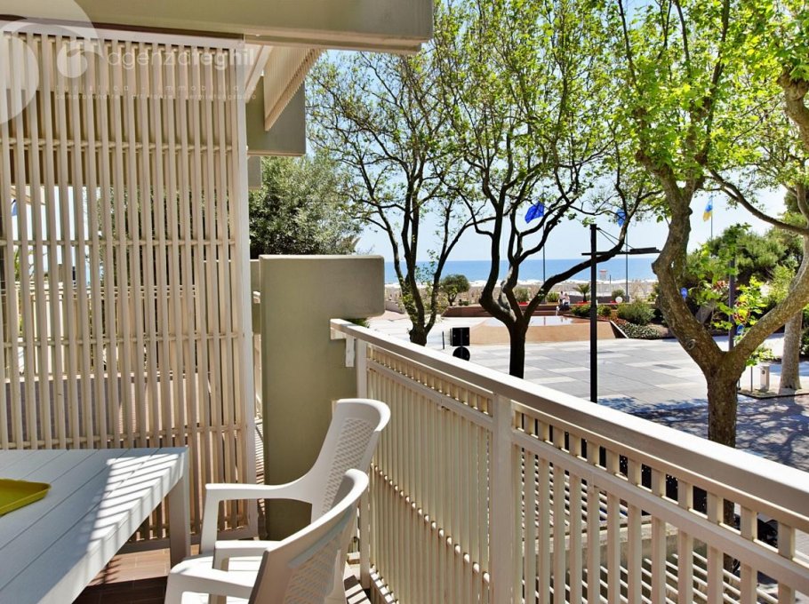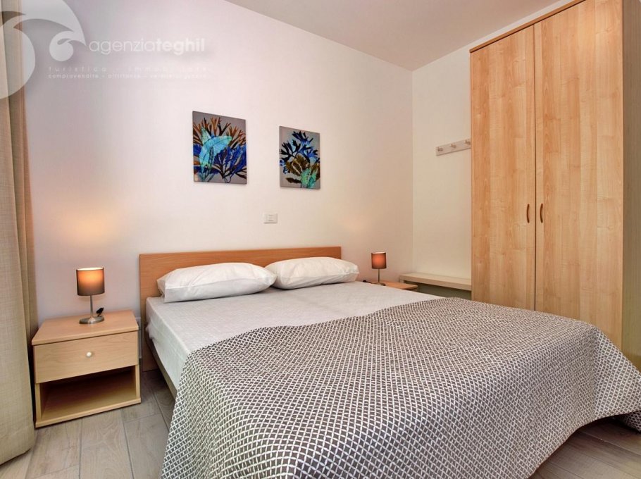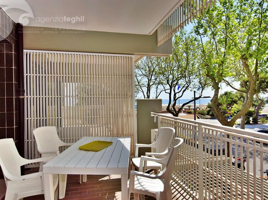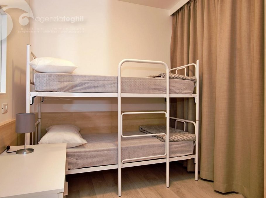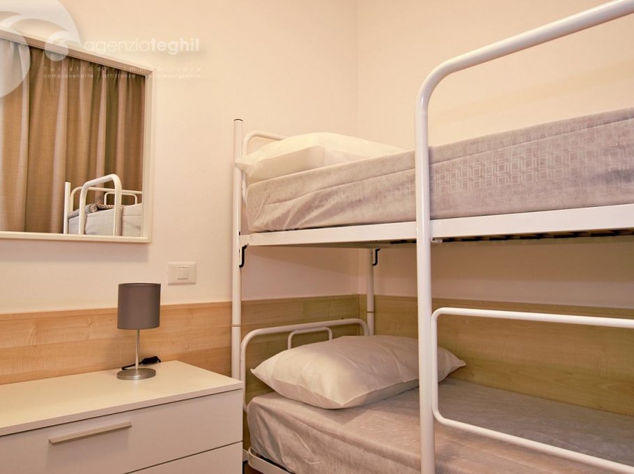 Type C: 4/5 people - Apartment on the 1st floor, with lift, composed of a living room with double sofa bed and large terrace overlooking the beach, equipped with outdoor table and chairs; kitchenette equipped with a 240-liter two-door refrigerator; one double bedroom with terrace, one bedroom with bunk bed, bathroom with shower and vent fan. The apartment is also equipped with air conditioning, wifi and a reserved parking space in the garage.