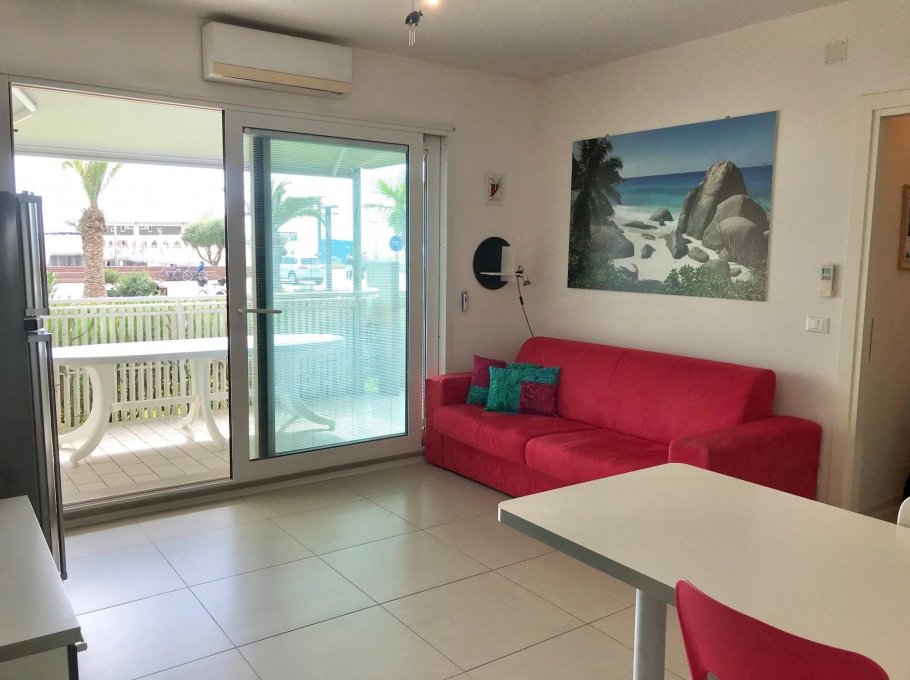 Type C: 4/5 people: Completely renovated apartment located on the ground floor consisting of a double bedroom, a bedroom with bunk bed, living room with sofa bed and kitchenette, bathroom with shower, large terrace. The apartment is also equipped with dishwashing machine and air conditioning.
