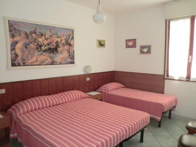 Renewed apartment direct on the beach and in centre of Sabbiadoro. The apartment is situated on the first floor and is composed of a doublebedded room, a threebedded room, living room with kitchen,bath room, balcony with view over the sea, parking place, strong box, washing-mashine, dish-washer.Air conditioning.