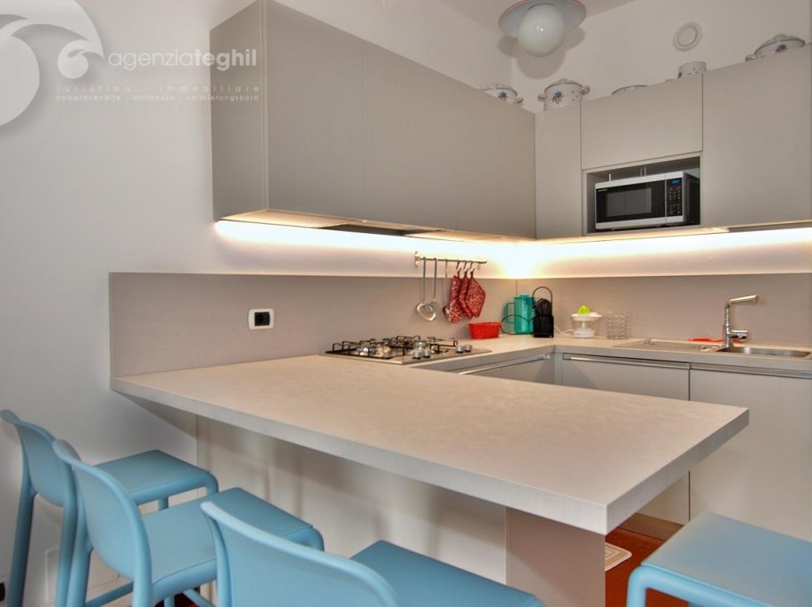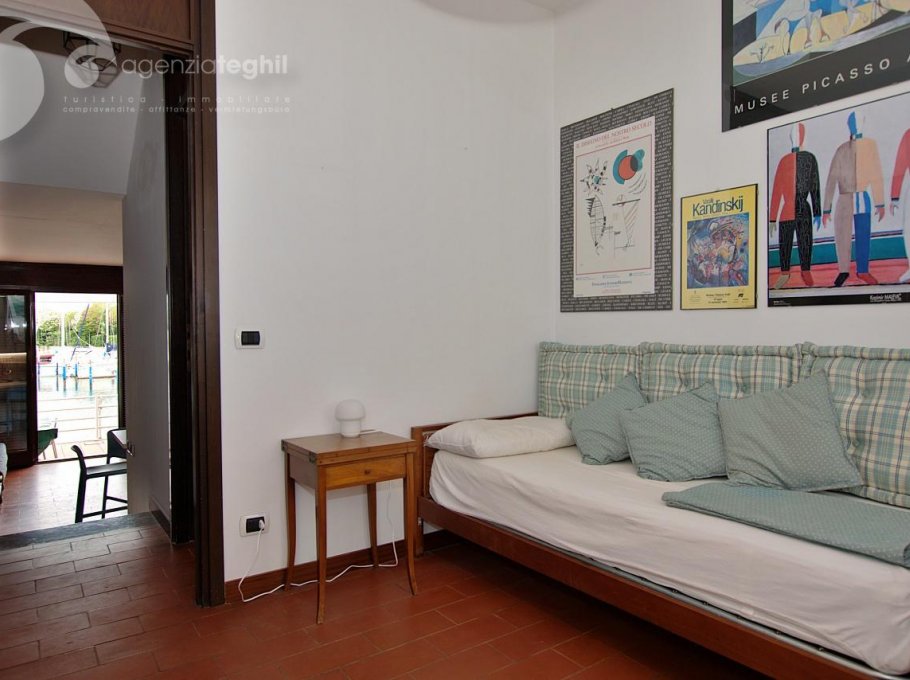 Type D: 5 people - Terraced villa on several levels without elevator. Composed of garage on the ground floor equipped with washing machine, refrigerator and freezer; on the first floor living room (television only Italian programs), kitchenette (microwave, dishwasher, fridge single port 104 lt. with freezer, table peninsula 5 seats), terrace overlooking the marina of Terra Mare equipped with electric sunshade, table and 6 outdoor chairs, single room and bathroom with shower; on the second floor double bedroom with window and view of the port, master bathroom with shower, Third attic room with two beds with window. This house has washing machine, dishwasher, WiFi, air conditioning and private parking.