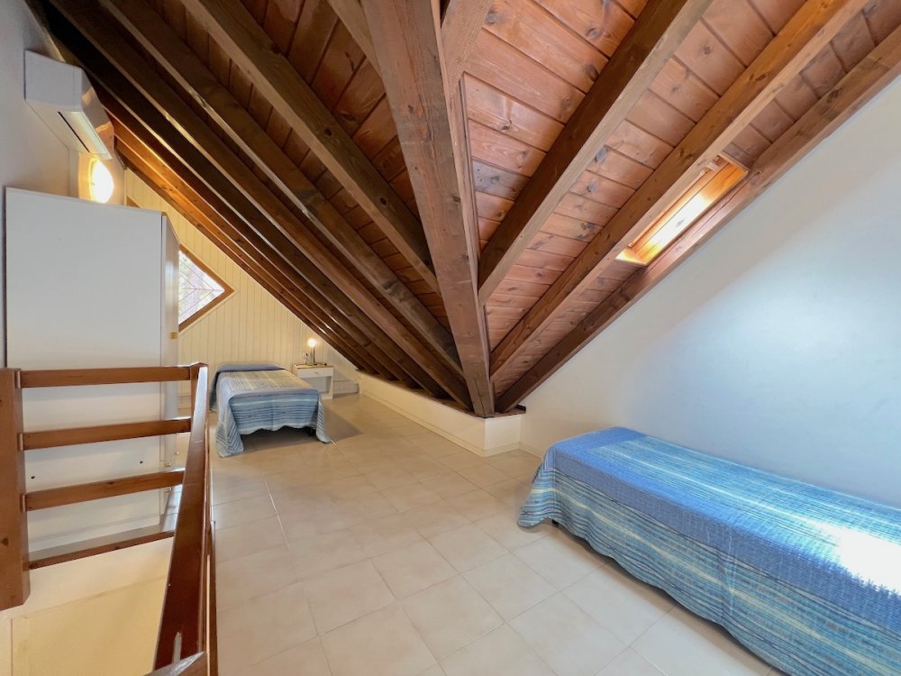 Row house nr. 53 with on the ground floor living room with kitchenette, sofa bed, 1 toilette. On the first floor double room + balcony, 1 bathroom with shower. Mansard with 2 beds. Fenced garden and 1 parking place. TV, air conditioning, washing machine., dishwasher, safe WI-FI1 umbrella and 2 sun beds included