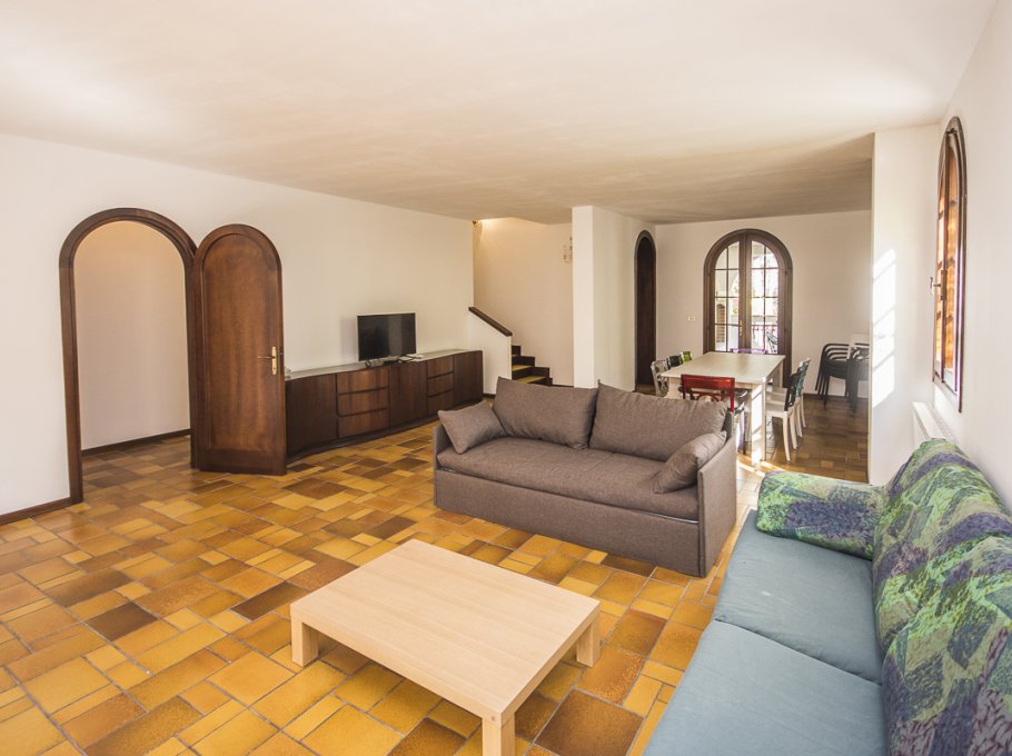 Mezzanine floor, 1 toilet, large air-conditioned living room with direct access to the large garden side terrace and direct access to the entrance terrace, sofa bed, kitchen with dishwasher and direct access to the garden side terrace, barbecue