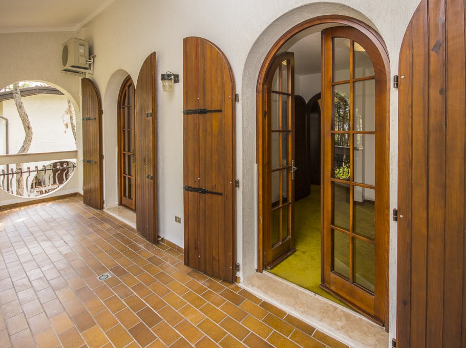 1st floor single bedroom with pull-out bed with access to the terrace, double bedroom with air conditioning and direct access to the terrace, large wardrobe with several compartments in the corridor, bathroom with tub and shower, 1 bathroom with shower, 1 double bedroom with air conditioning access to the garden view terrace, 1 single bedroom with a pull-out bed with direct access to the garden side terrace