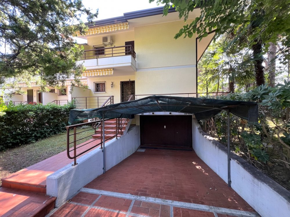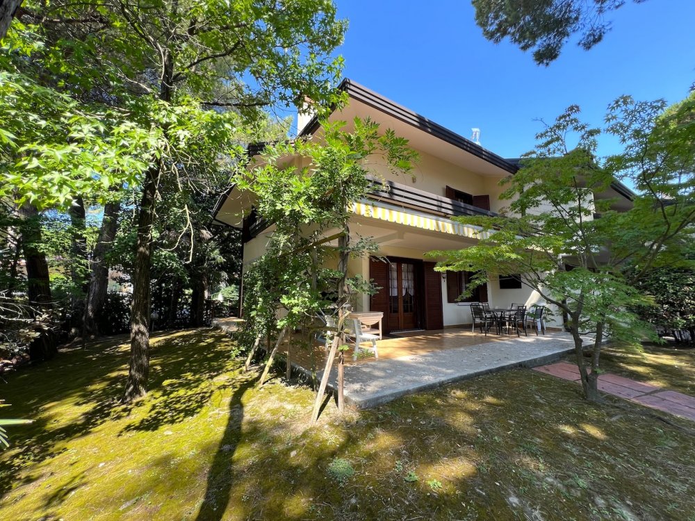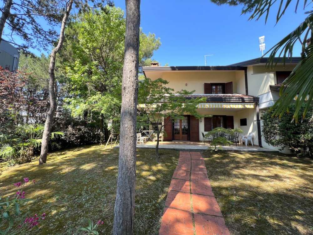 The house features a TV, air conditioning, washing machine, dishwasher, outdoor patio, and a private, fenced garden with parking space. The sea is approximately 300 meters away.