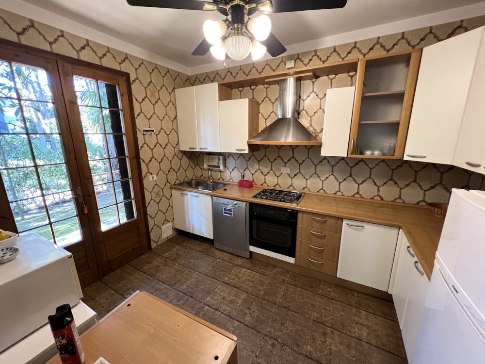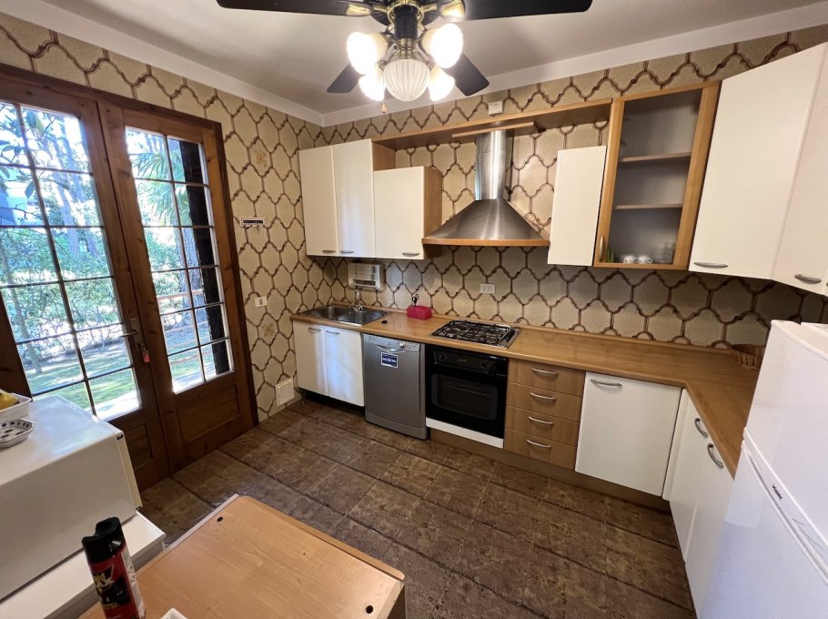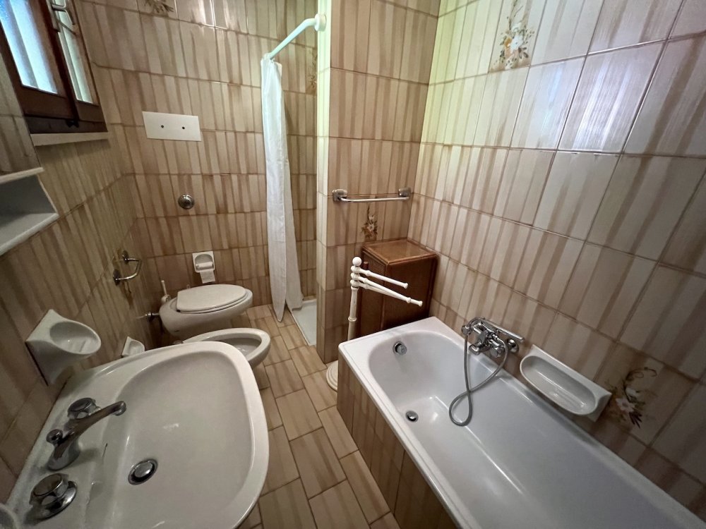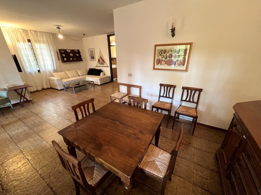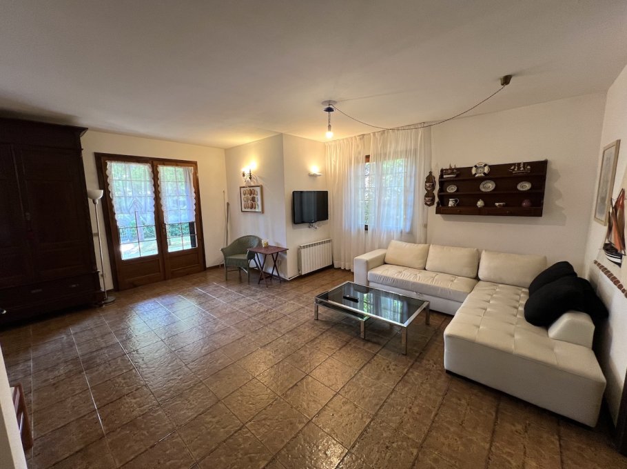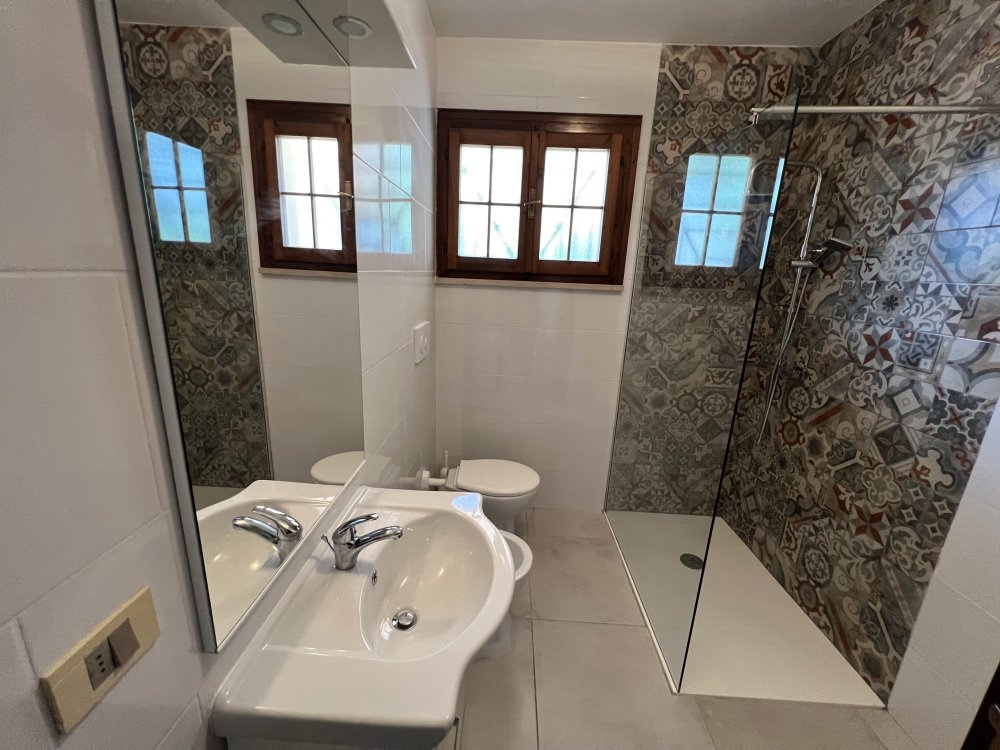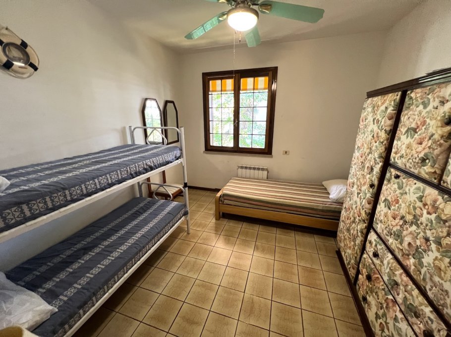 Part of a villa, comprising a living room, kitchen, WC, on the ground floor; and a double bedroom, a twin bedroom, a bedroom with a bunk bed and a single bed, and two bathrooms on the first floor.