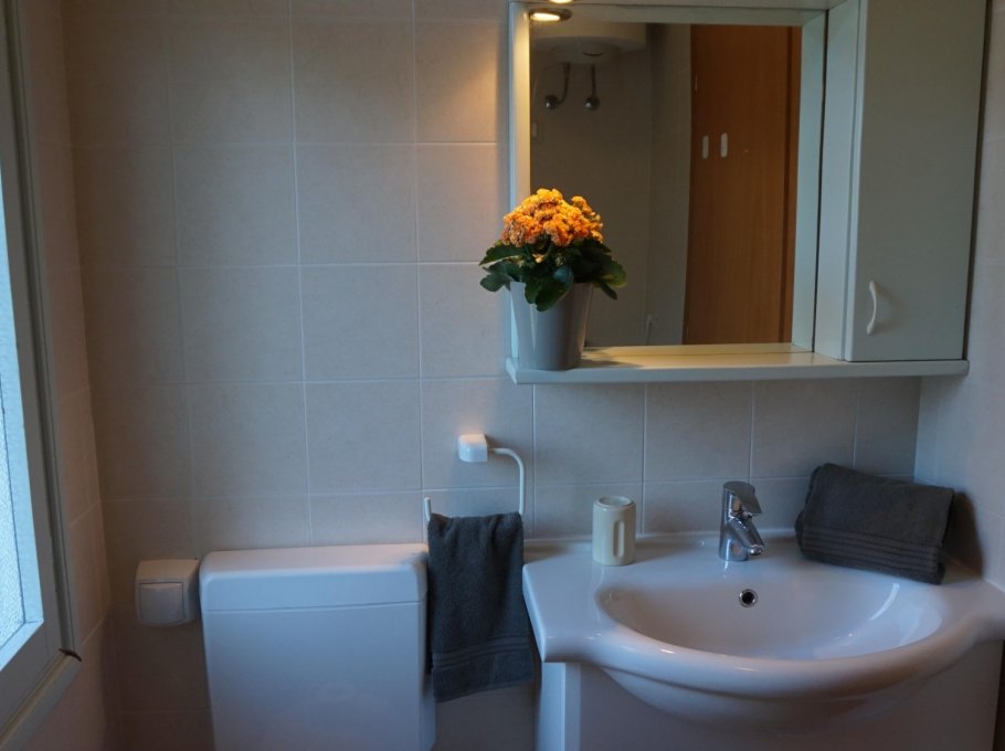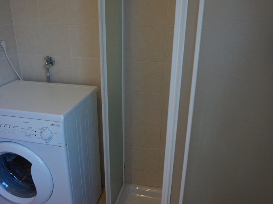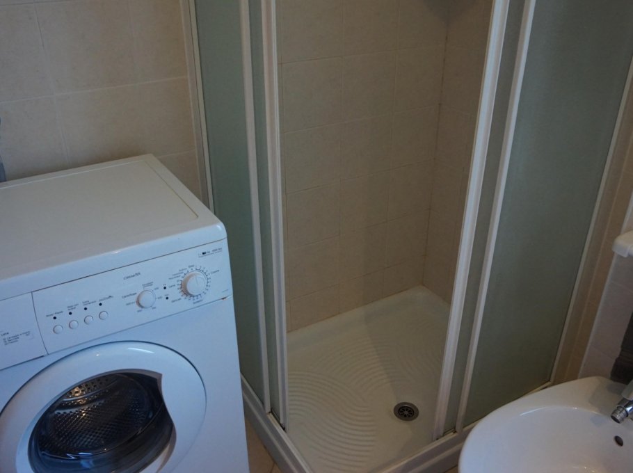 bathroom with window and shower box, air conditioning, washing machine, satellite TV, American coffee machine.
