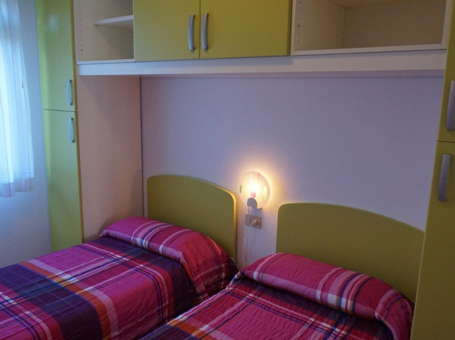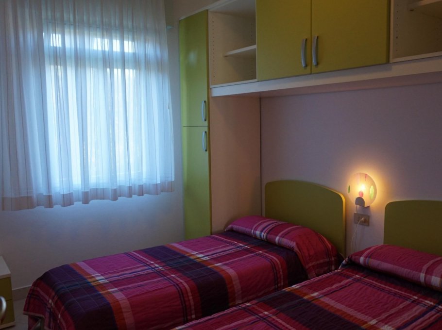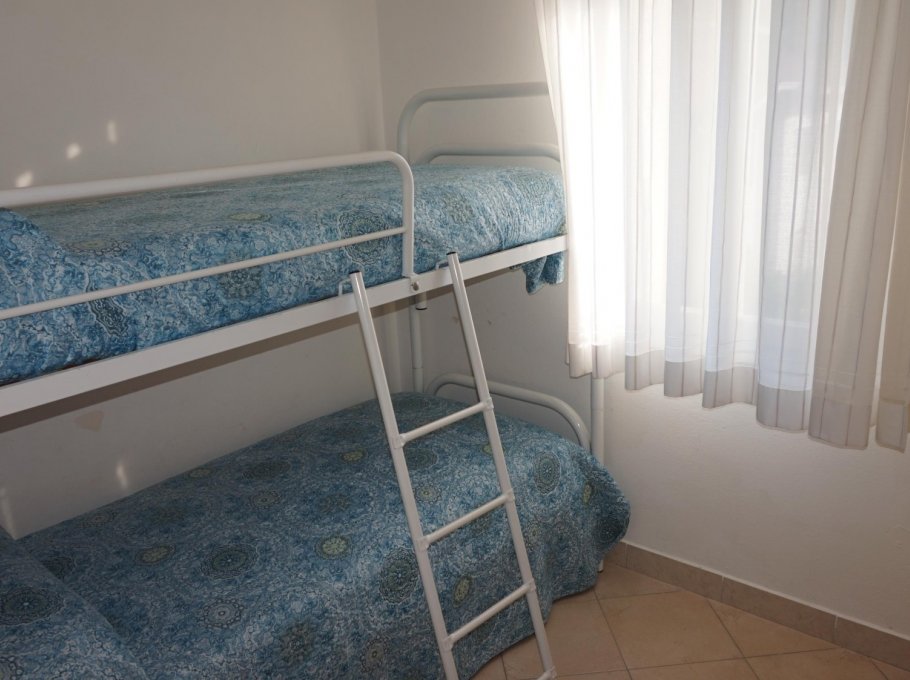 Comfortable renovated apartment, with 6 beds, located on the second and last floor, composed of a living room with kitchenette, sofa, terrace equipped with tables and chairs, 1 double bedroom, 1 twin bedroom, 1 bedroom with bunk bed,