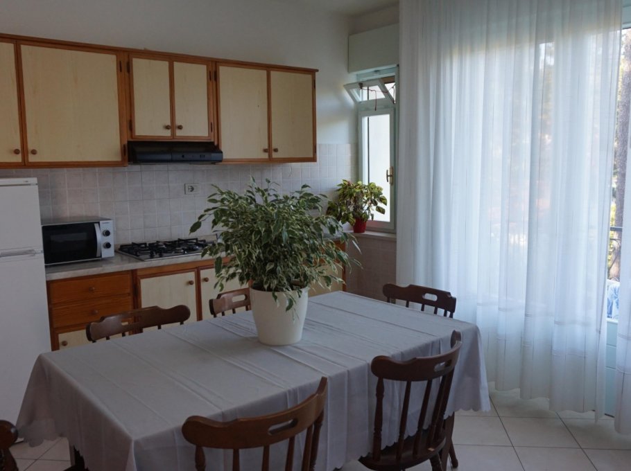 Quiet two-story house, consisting of 7 apartments with 1 covered parking space each, located in a green and quiet area about 150 m from the beach and a short walk from all the basic necessities: supermarket, newsagent, tobacconist, bar, ice cream parlors, pizzerias, restaurants.