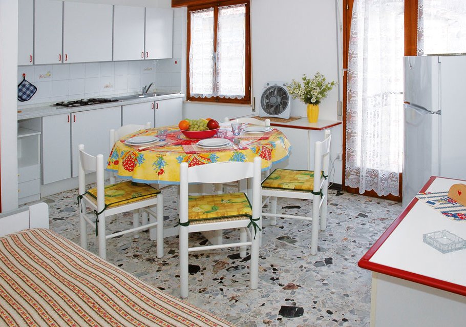 Two-roomed apartments,spacious and very luminous,so composed:a bed-room with 3 beds,spacious living-room with cooking area and divan-bed,bath-room with window and shower,two terraces.