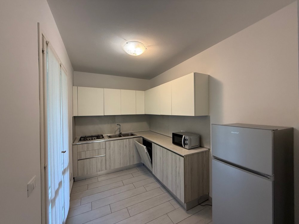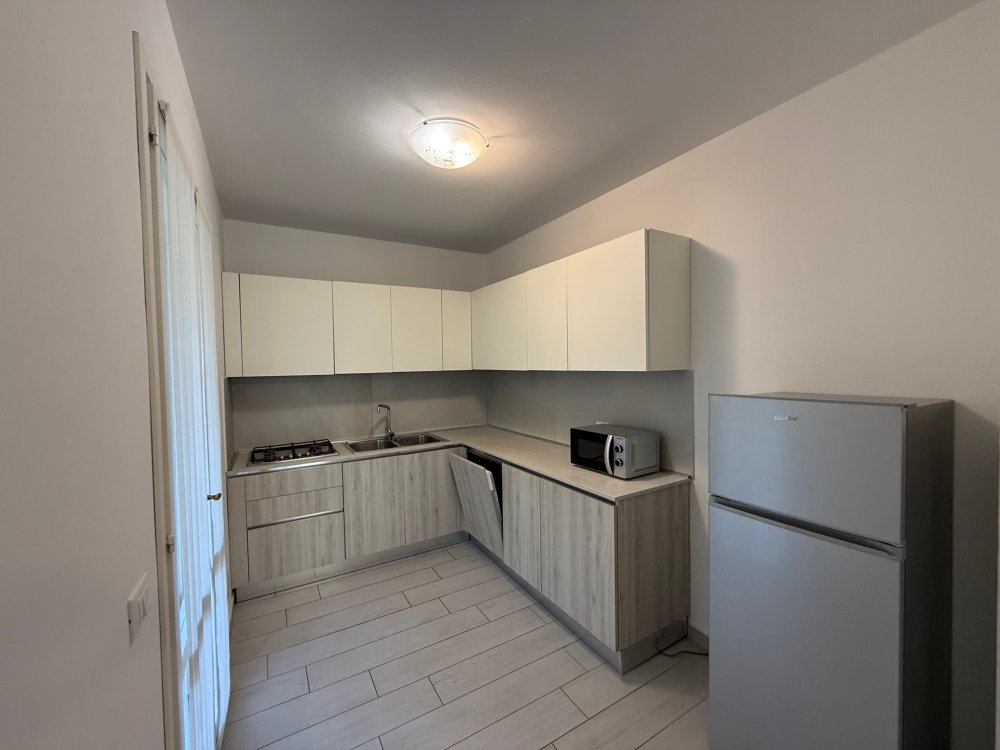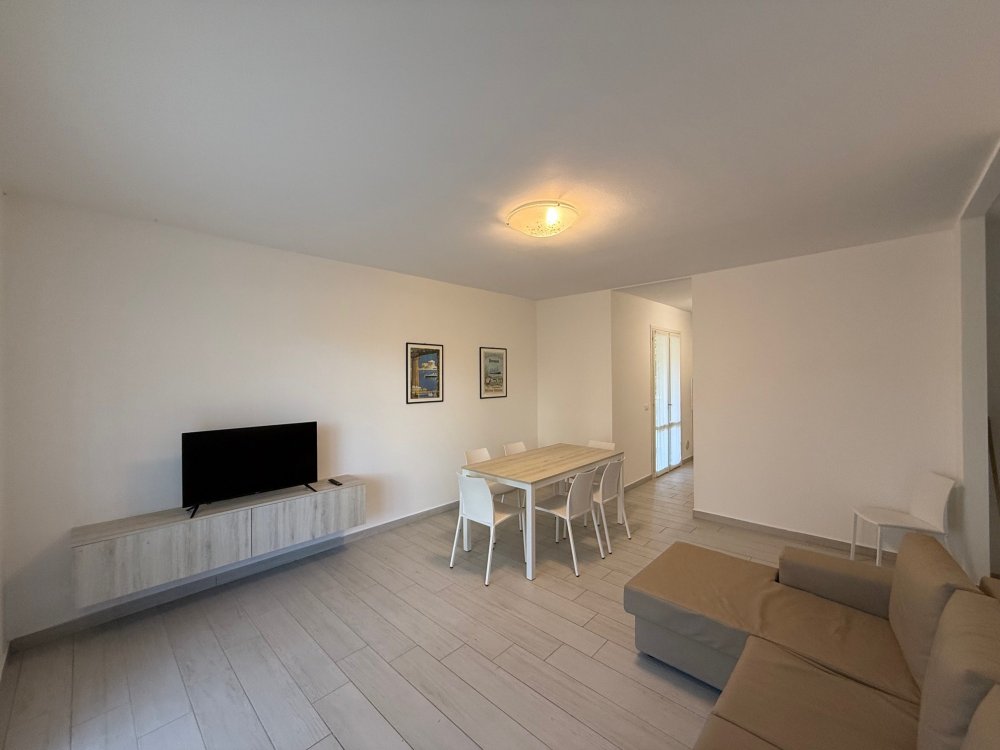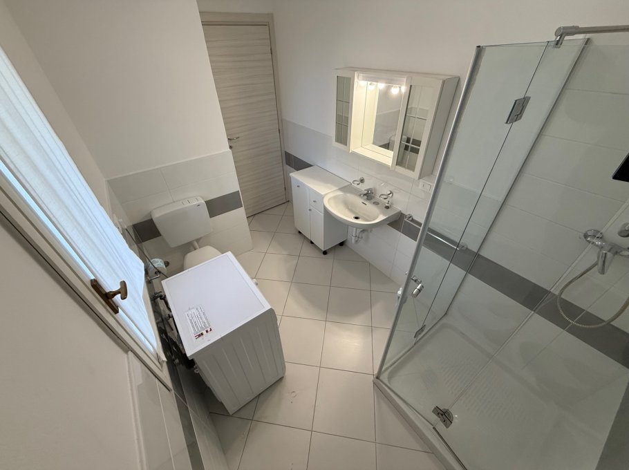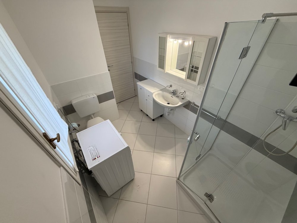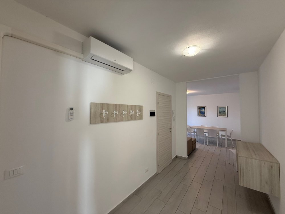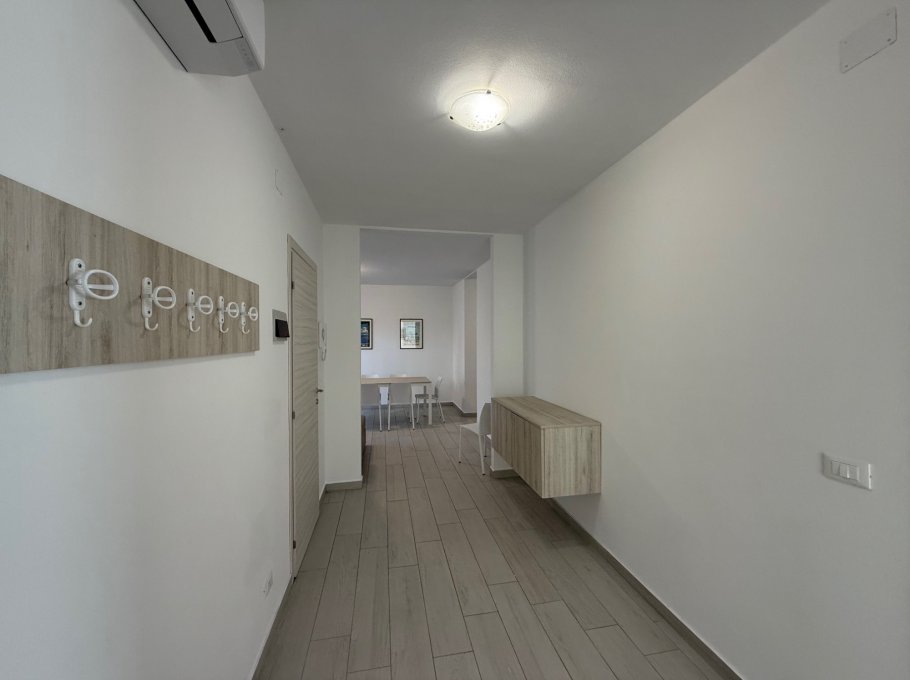 Apartment no. 10A on the mezzanine floor consists of: living room with sofa and direct access to a comfortable terrace equipped with table and chairs, open kitchen with access to another terrace, 1 double bedroom plus single bed, 1 bedroom with 2 single beds, bathroom with window and shower. Large garden. Possibility of adding 2 extra beds in the bedrooms (sleeps 5/7).