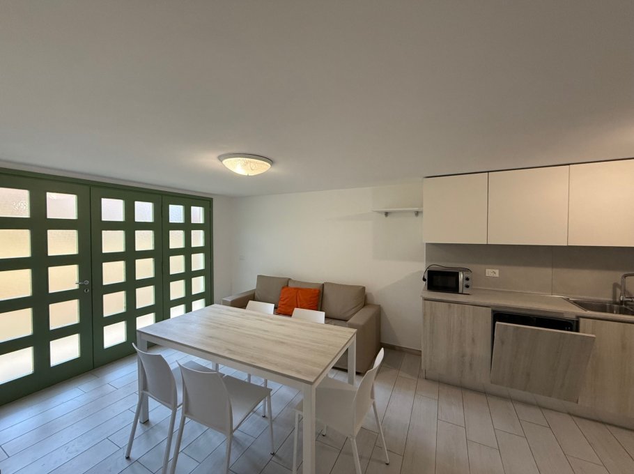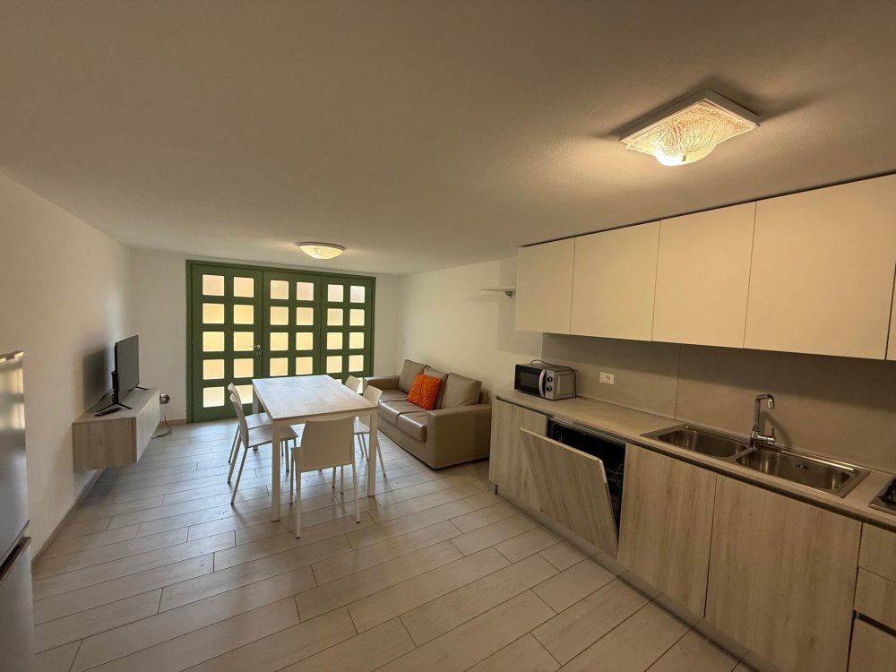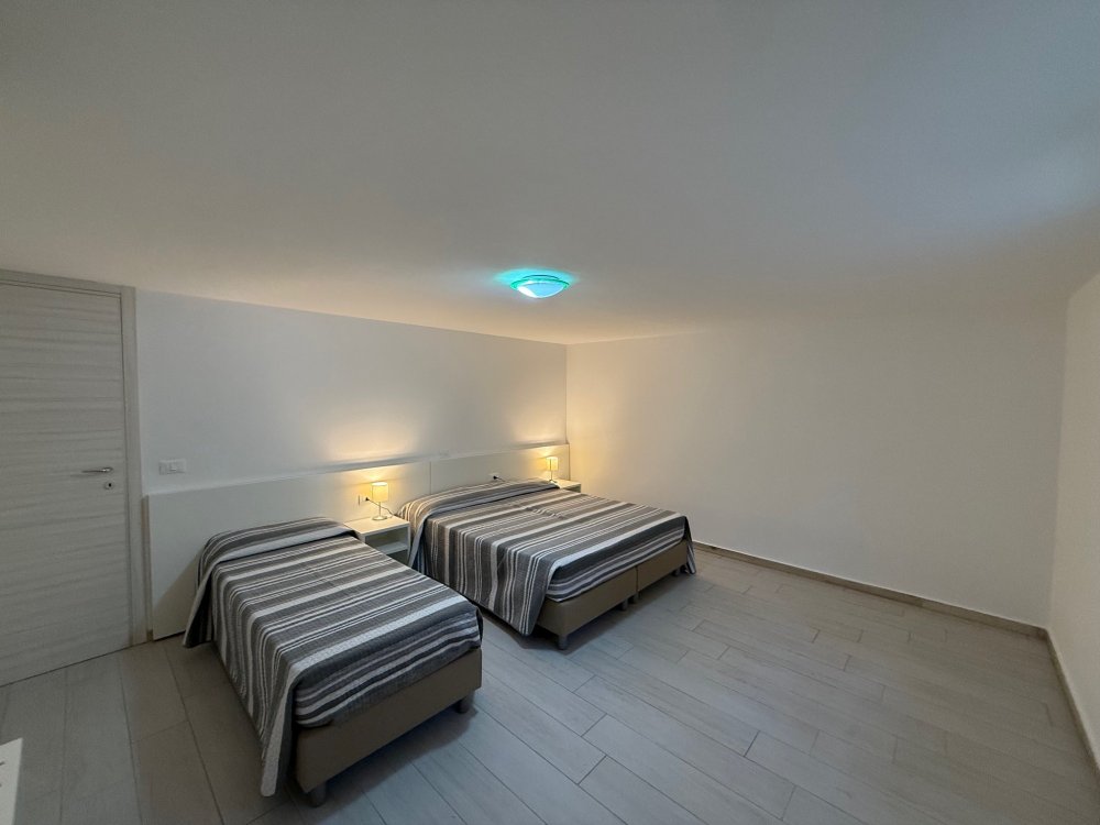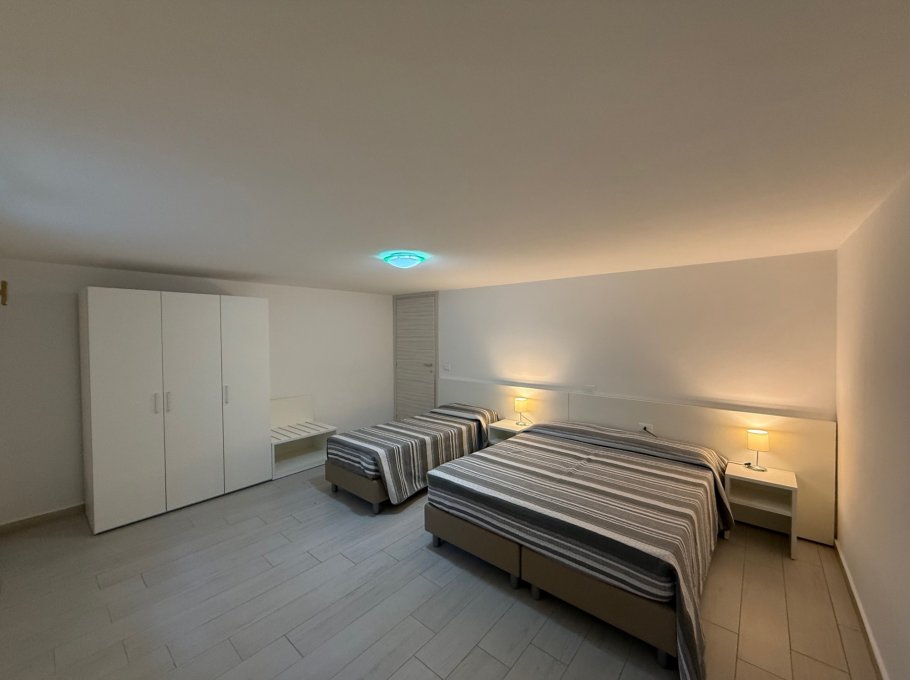 Apartment no. 10C on the ground floor consists of: living room with sofa and direct access to the outdoor area equipped with table and chairs, open kitchen, 1 double bedroom plus single bed, 1 bedroom with 2 single beds, bathroom with window and shower. Possibility of adding 2 extra beds in the bedrooms (sleeps 5/7).