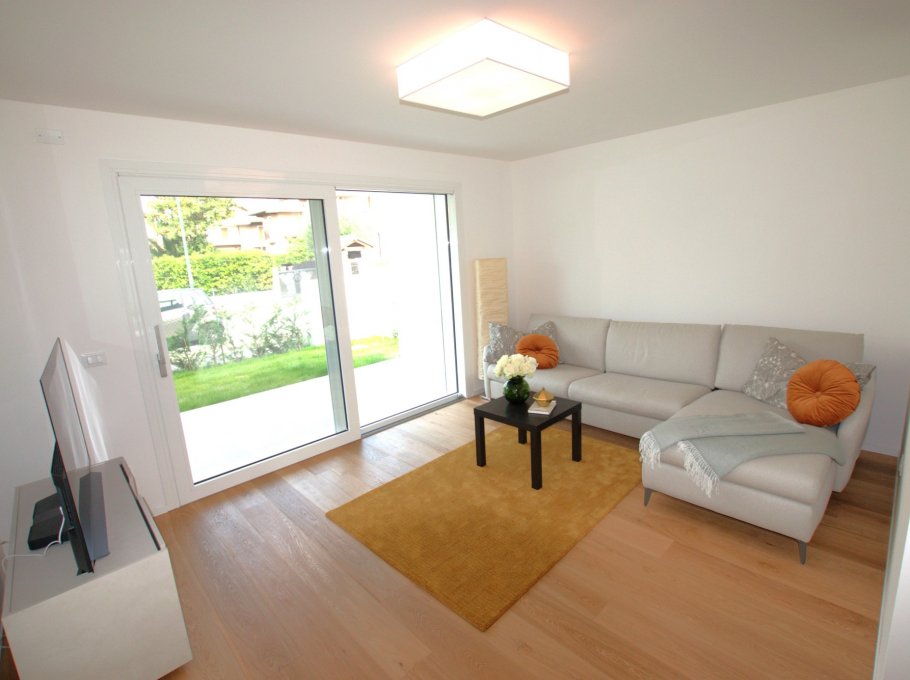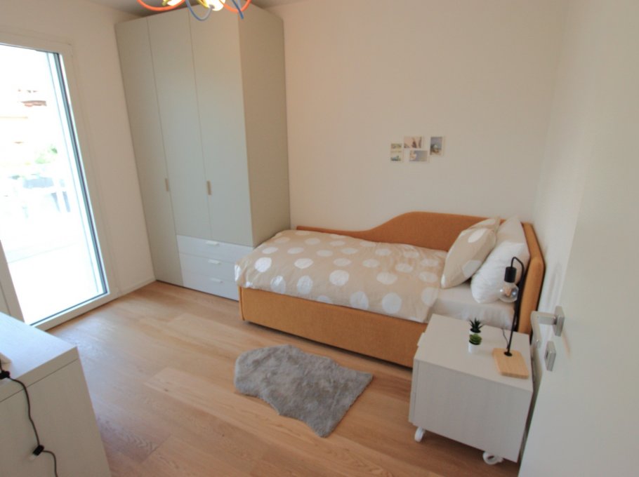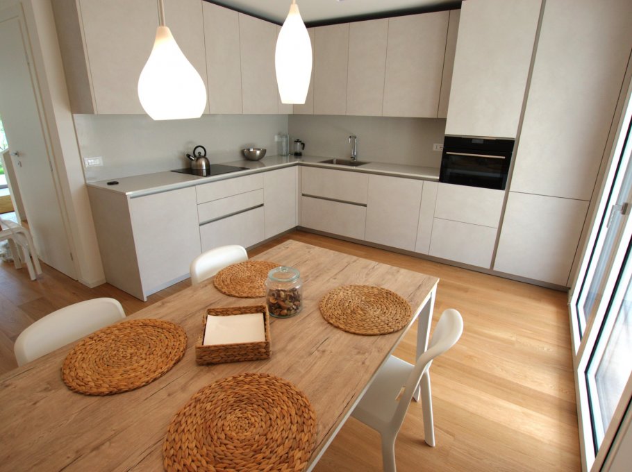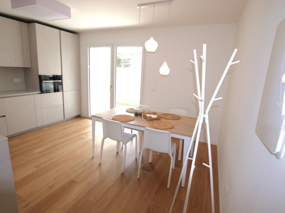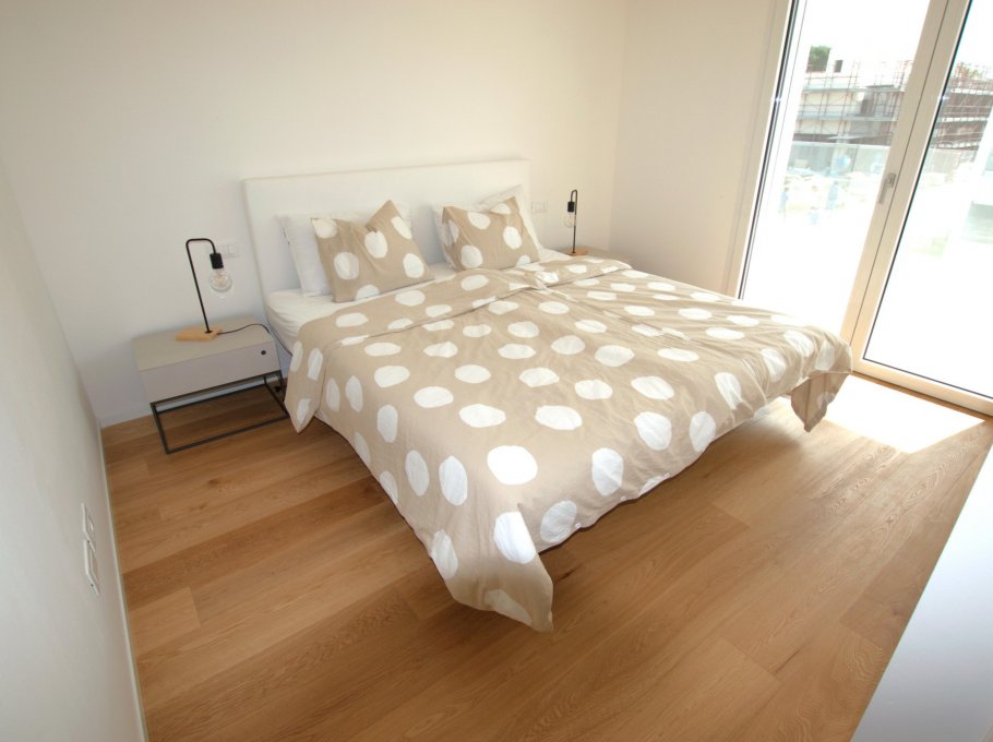 The villa is located on 2 levels. The ground floor consists of: living room with large window overlooking a private garden, small service bathroom, separate kitchen with all necessary appliances. Upstairs there is a double bedroom with walk-in closet, two single rooms with a second pull-out bed, 2 bathrooms with a shower box. Each room has access to a terrace. Solarium on the second floor equipped with umbrella and sun beds. The villa has air conditioning, Wi-Fi, satellite TV, underfloor heating and parking.