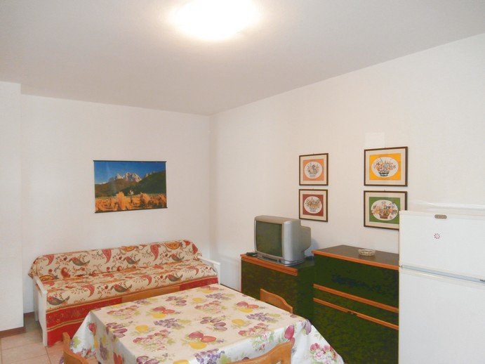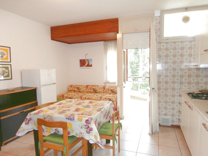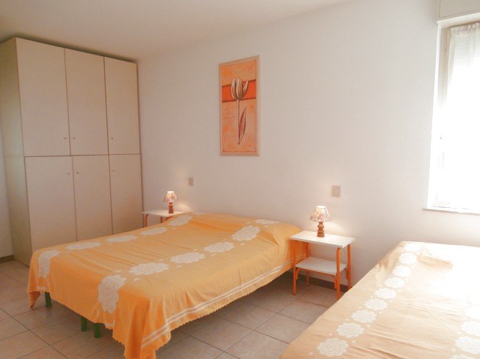 квартира на первом этаже. в зале место для кухни и двухспальный диван, комната с 3 кроватями.односпальная комната, туалет с окном, телевизор, терраса, спокойная зона
