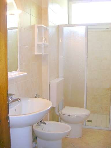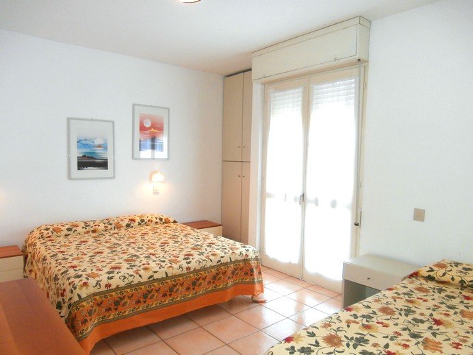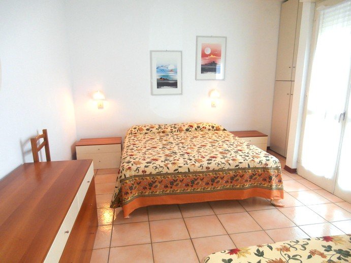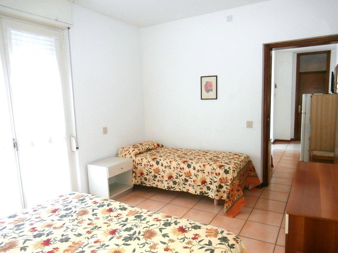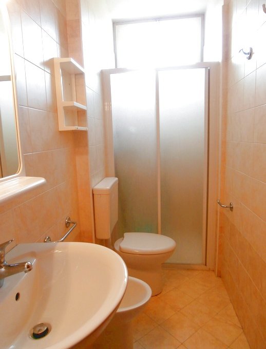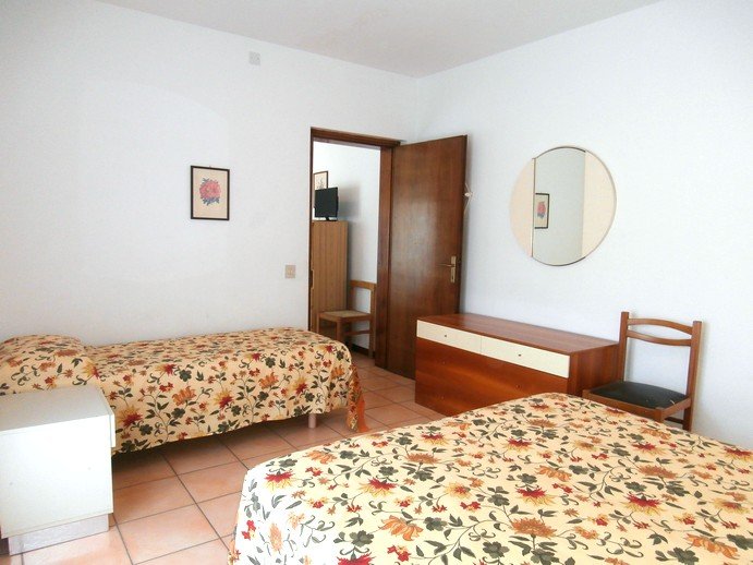 квартира на втором этаже, в зале место для кухни и односпальный диван, комната с 3 кроватями. двухспальная комната, туалет с окном и душем. 3 террасы