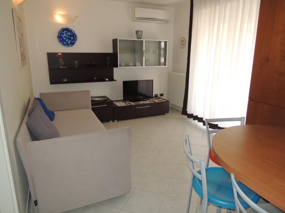 An elegant and furnished apartment, 1 bedroom with a double bed, kitchen/livingroom with a sofa-bed, bathroom with box-shower, air conditioned, washing machine, dish-washer, balcony and parking place;