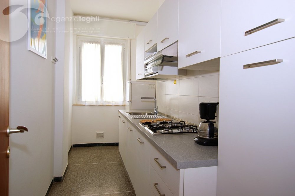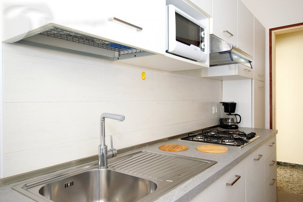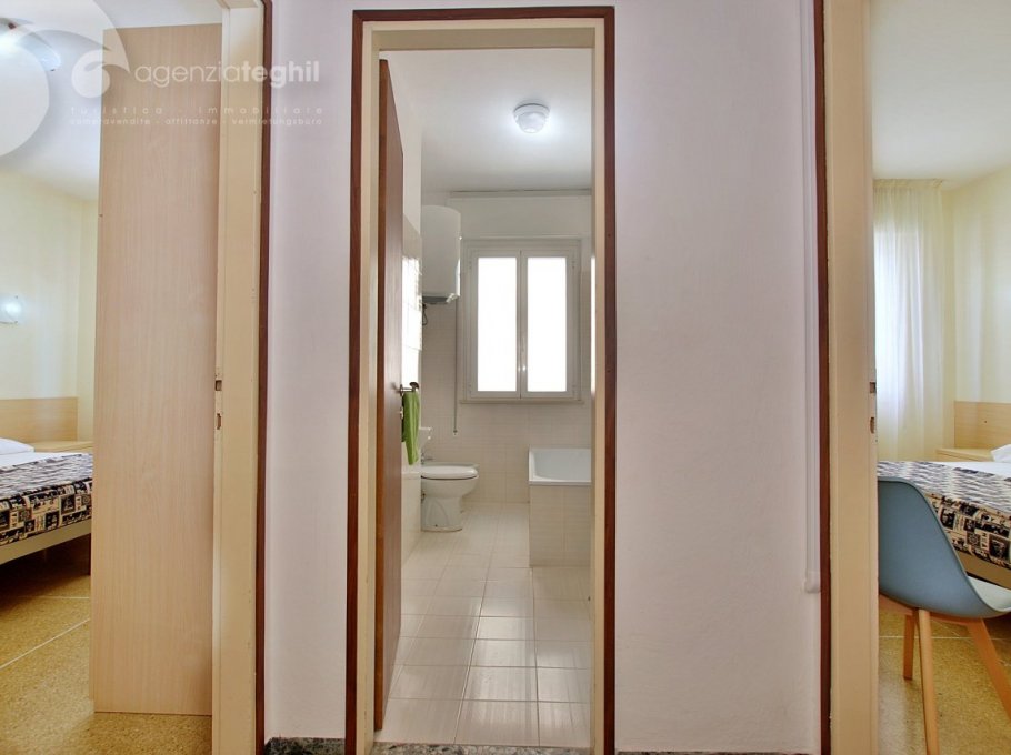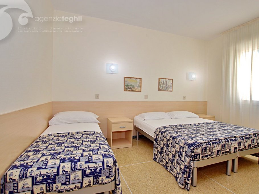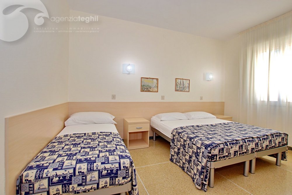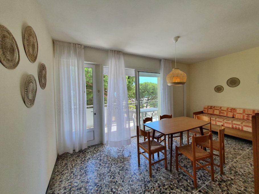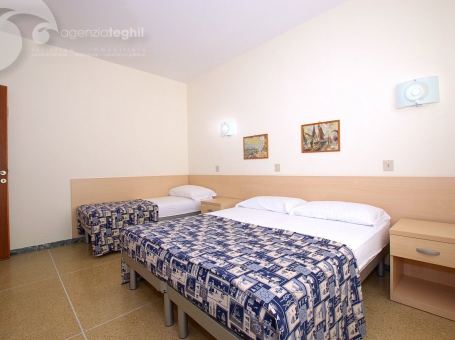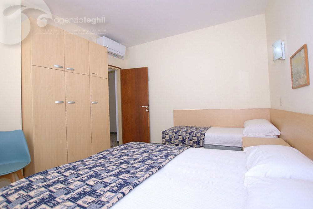 Type C - 5/6 people: Spacious apartment on the 3rd floor (no elevator) featuring a triple bedroom, a double bedroom, a bathroom with a window and a bathtub, a living room with a single sofa bed, and a terrace overlooking the seafront/beach, furnished with a table and chairs. Separate kitchen with a 240-liter double-door refrigerator, microwave, and dishwasher.