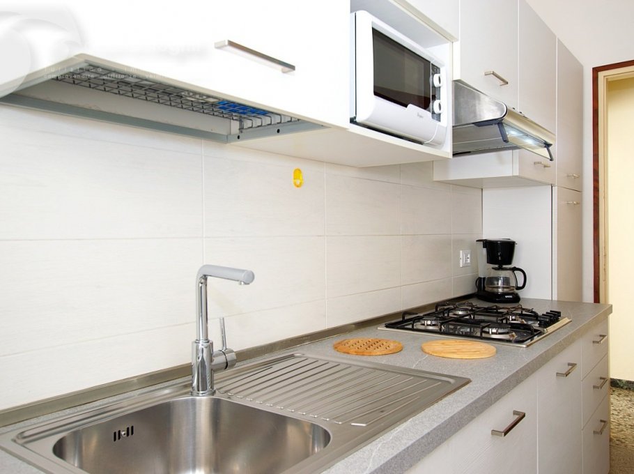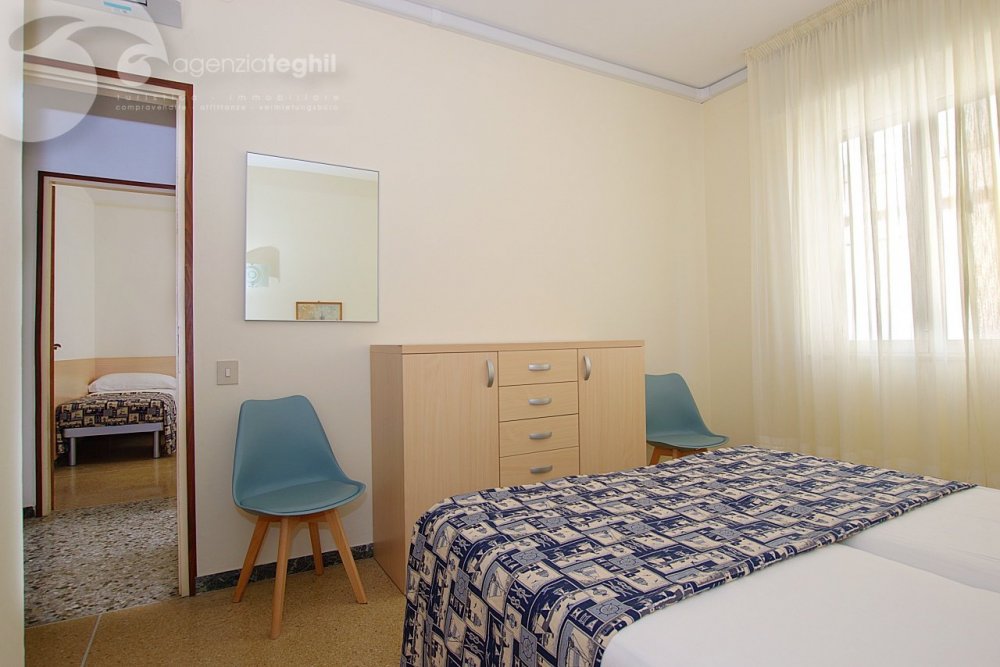 Type C - 5/6 people: Spacious apartment on the 3rd floor (no elevator) featuring a triple bedroom, a double bedroom, a bathroom with a window and a bathtub, a living room with a single sofa bed, and a terrace overlooking the seafront/beach, furnished with a table and chairs. Separate kitchen with a 240-liter double-door refrigerator, microwave, and dishwasher.