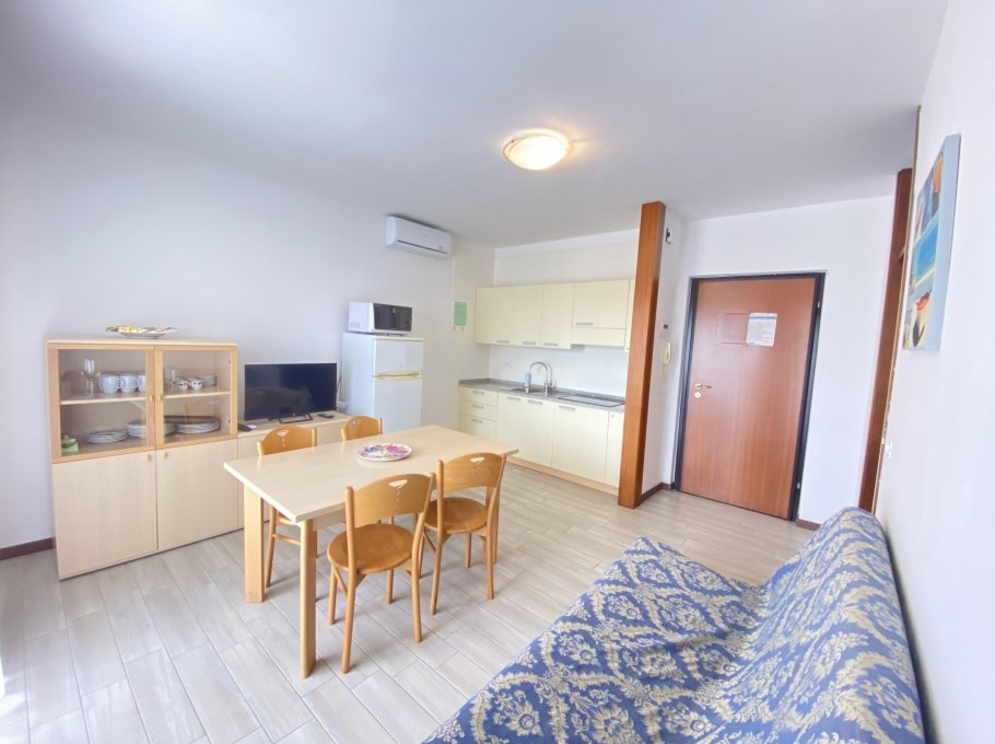 The apartment is at Residence Blu which is located at the beach promenade, near to the center of Lignano Sabbiadoro. This House have a big garden, lift and private-parking. The apartment is renovated and is on 3° floor. the apartment composed with 1 sleepingroom with 3 beds, livingroom with double bedcouch, kitchen, bathroom with showerbox, balcony with seaview, microwave, sat-tv, air conditioning and waschingmaschine in cellar.