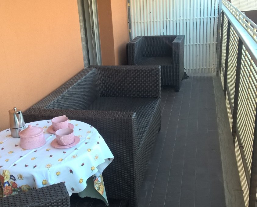 Bilocale sito al 3°piano con ascensore composto da una camera matrimoniale, soggiorno con angolo cottura e divano letto doppio, TV, sia in camera che in soggiorno, forno, lavastoviglie, miucroonde, aria condizionata, in entrambi gli ambienti, bagno con box-doccia, scaiugacapelli, cassaforte, terrazzo vivibile, posto auto.