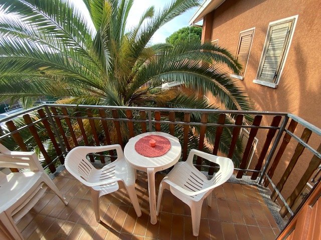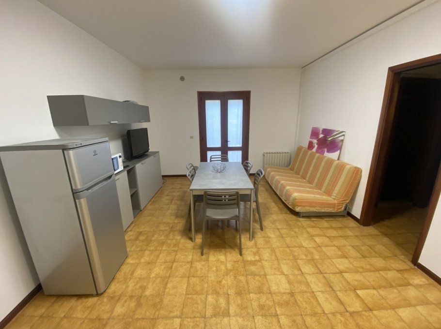 L'appartamento è composto da soggiorno con angolo cottura e divano letto doppio; camera matrimoniale; camera doppia; bagno con doccia e terrazzo abitabile e arredato.