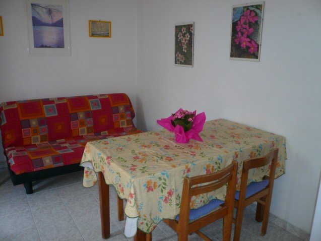 una camera da letto(matrimoniale + un letto singolo)soggiorno con angolo cottura e divano letto, TV,forno a microonde, aria condizionata,bagno finestrato con box-doccia, terrazzo, posto auto coperto.