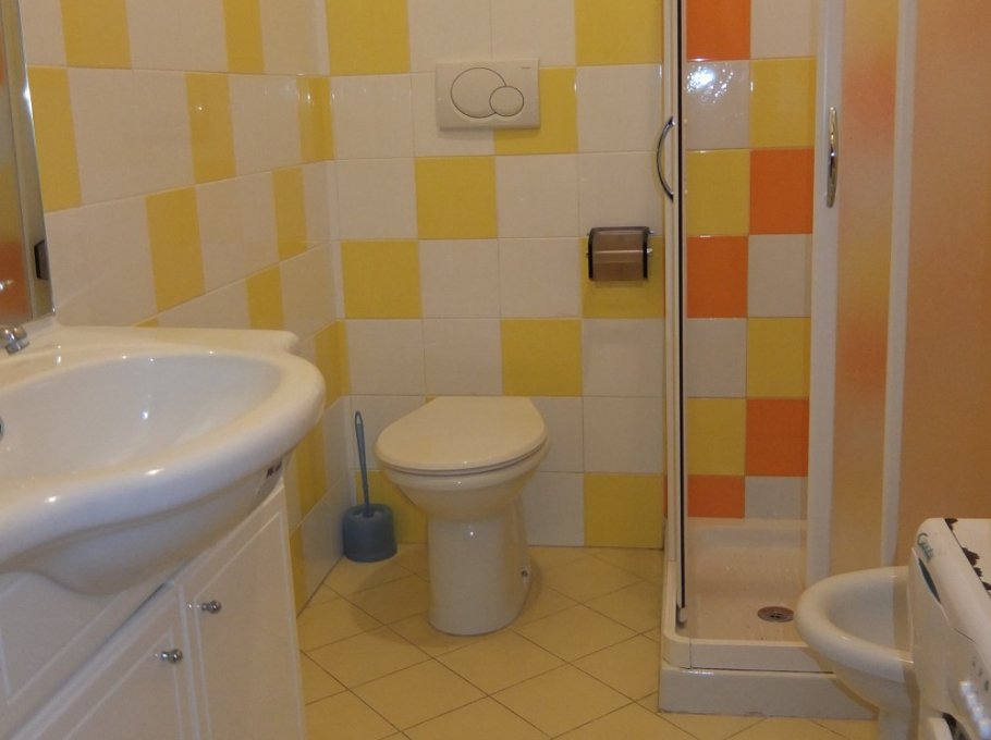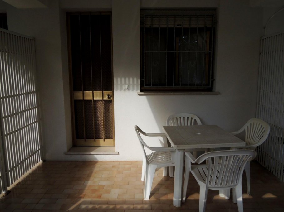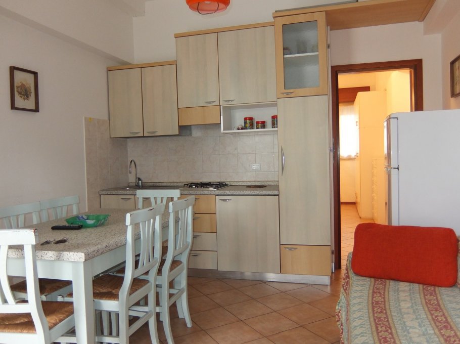 A furnished apartment on the ground floor, bedroom with a double bed, kitchen/living room with a sofa-bed, bathroom with box shower, washing machine, tv and a balcony. Air conditioning on request (extra to pay) €. 35,00 each week.
