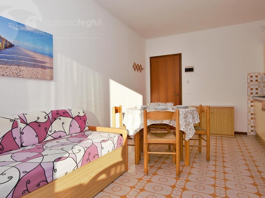Residence with swimming pool, shared garden and parking areas. Located 800 m from the beach and 50 meters from the Laguna. Located in a quiet location, near the Park Arena Alpe Adria.