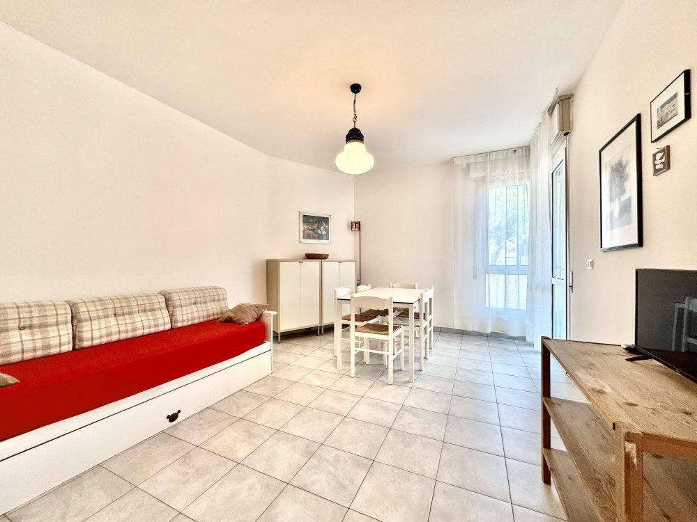 Bedroom with double and single bed. Living room with divan-bed for two people. Kitchenette-corner. Bath with shower. Reserved park place. With Air conditioning and washing machine.