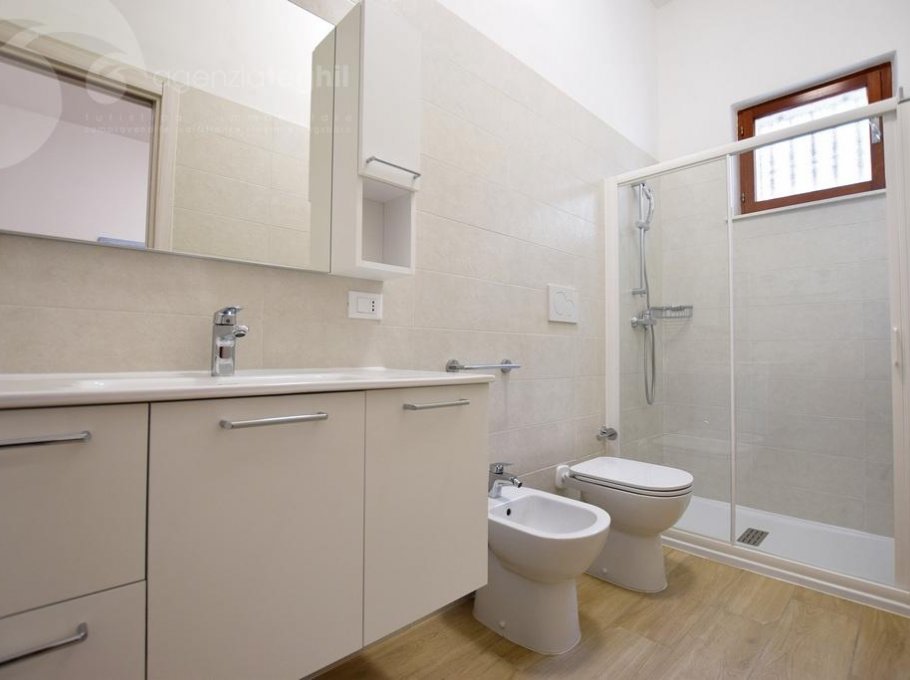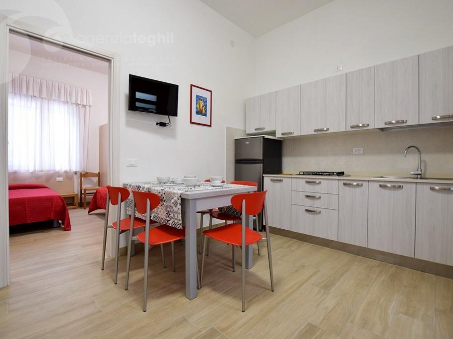 Type B: 3/4 people - Apartment completely renovated with modern finishes, on the grounfloor, composed of a sleeping area with a bedroom with double bed, bathroom with window and shower cubicle; living area with a living room equipped with a single sofa bed and a television with satellite connection, a kitchenette with a 240-liter fridge (separate freezer), without balcony. The apartment is also air-conditioned and with free Wi-Fi (code to be requested in the agency).